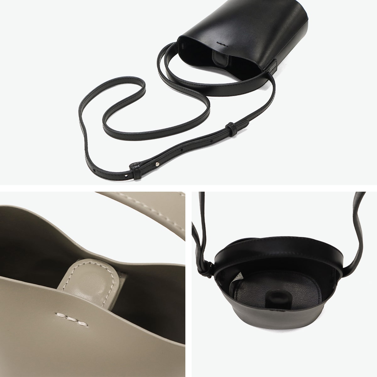 柔らかなカーブを描く楕円形の底面と、洗練された縦長フォルムが美しいW FACEレザーのクロスボディバッグ。コンパクトながら、スマートフォンやミニ財布などの必需品をしっかり収納できる設計。マグネット開閉で使い勝手もスマートです。手持ち・肩掛け・斜めがけと、幅広いスタイルに対応可能。立体感のある洗練されたフォルムが、シンプルな装いをさりげなく引き立ててくれます。