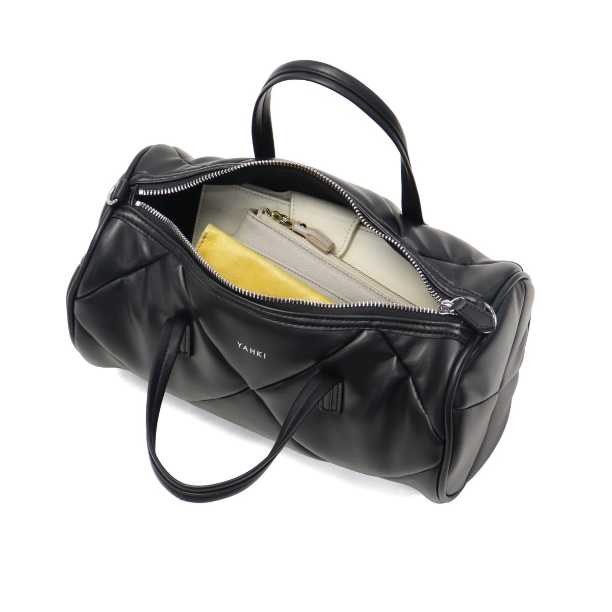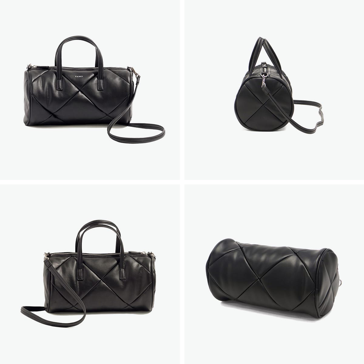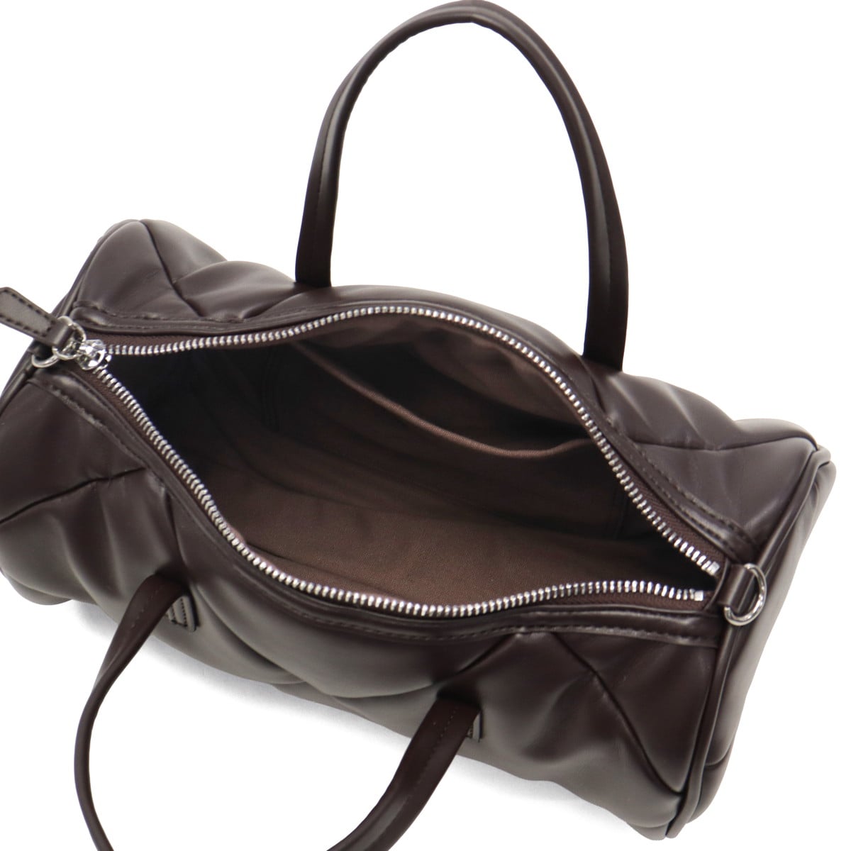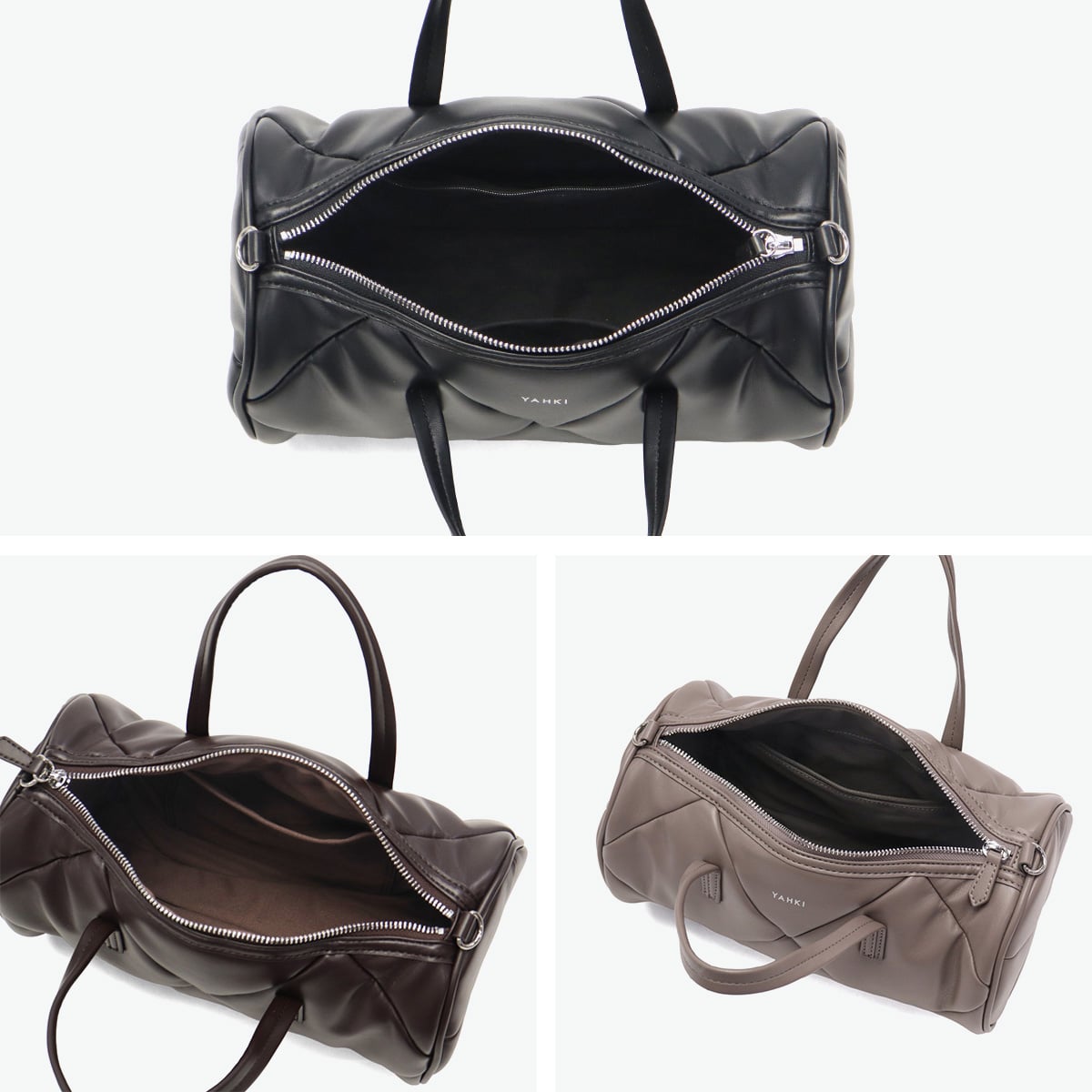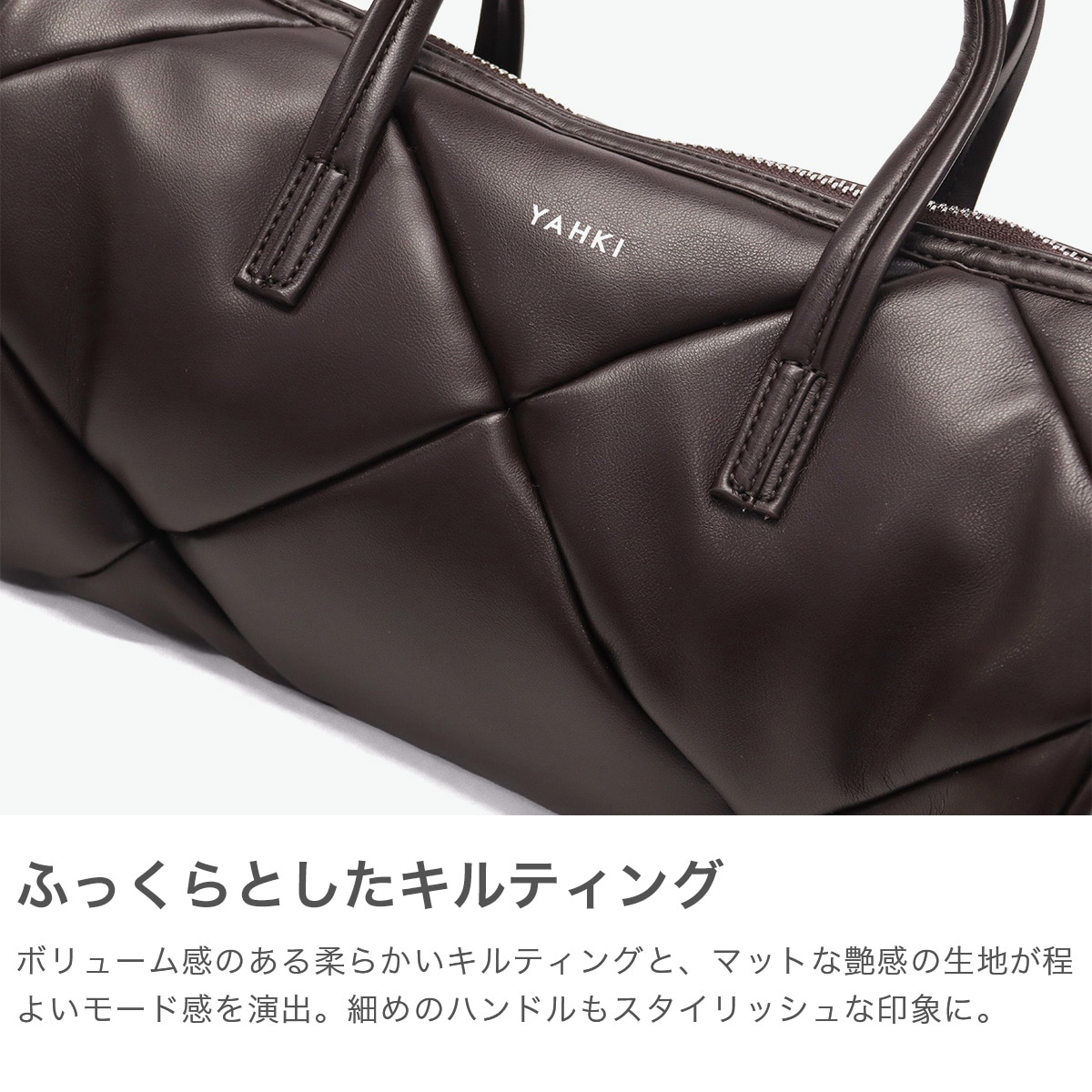 やわらかなボリュームキルティングが目を引く、ロール型の2WAYボストンバッグ。マットな艶感のフェイクレザーで、カジュアルすぎず程よくモードな印象に。丸みのある筒状フォルムに中わたを施し、軽やかな印象ながら容量はしっかり。軽さと収納力、持ち方の変化まで、機能性とファッション性を兼ね備えたアイテムです。