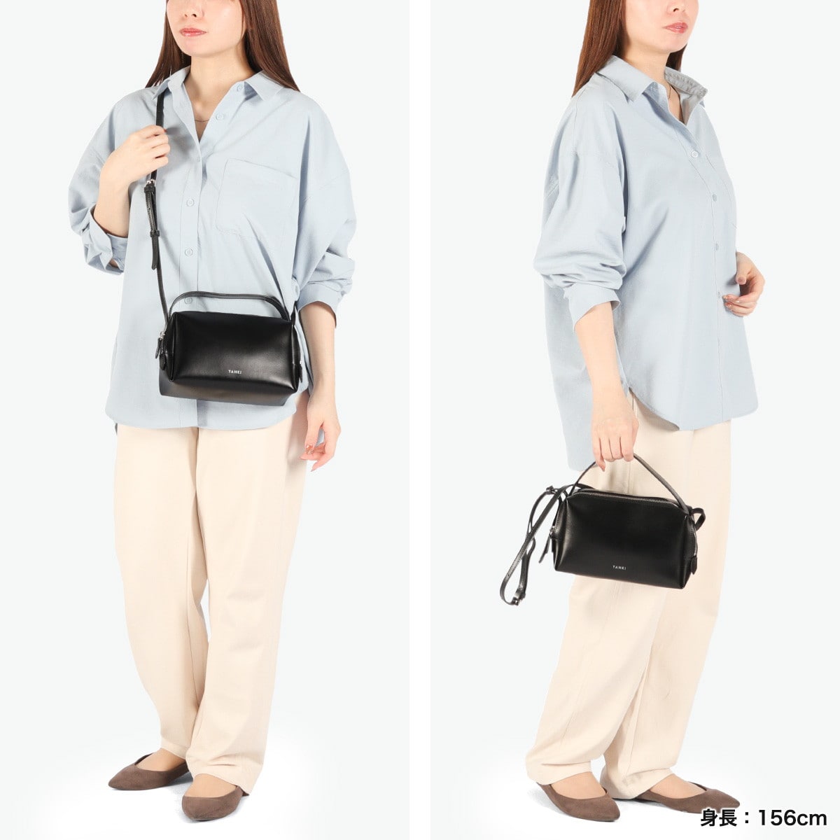 ころんとしたフォルムが愛らしい、2WAYショルダーバッグ。太めのハンドルは可愛らしさと実用性を兼ね備え、手持ちスタイルにも対応。前面寄りのファスナーがデザインのアクセントになり、開口部は大きく開いて中身が見やすい設計。広めのマチで収納力も十分。コンパクトながら存在感があり、新鮮なバランス感を備えたアイテムです。