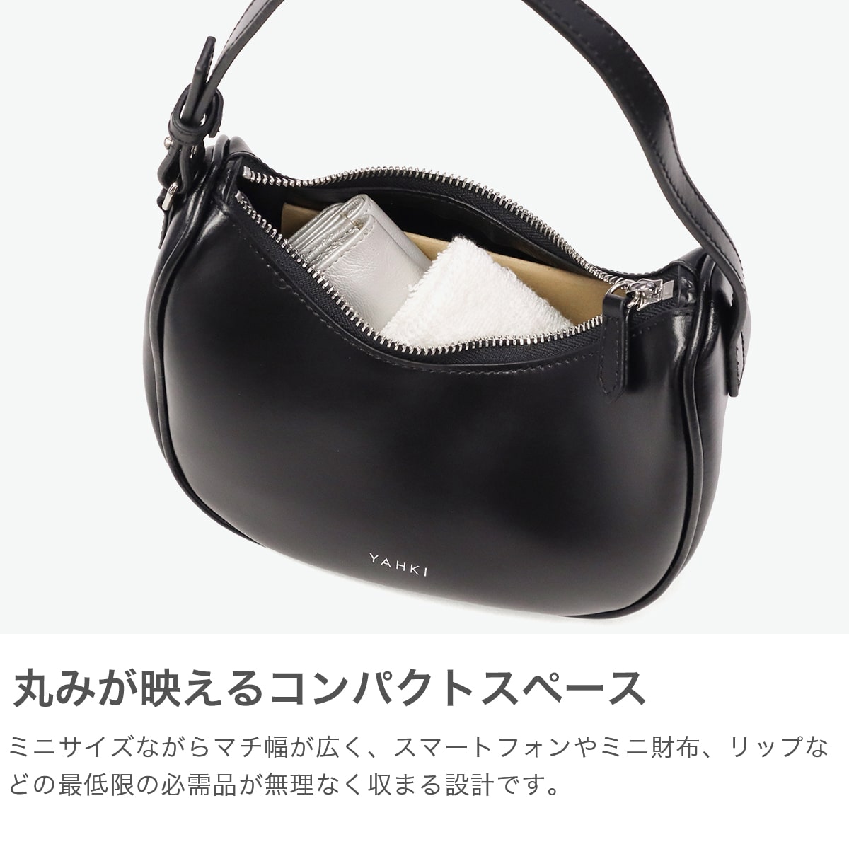 ころんと丸みのあるフォルムが愛らしい2WAYミニバッグ。セパレート式ストラップで、クロスボディにもハンドバッグにも変えられる、機能的でユニークなデザインです。艶感のある床革が、印象に残る存在感を放ちます。コンパクトながらしっかりとマチがあるので、見た目以上の収納力。軽やかに持ててスタイリングのアクセントにもなるアイテムです。