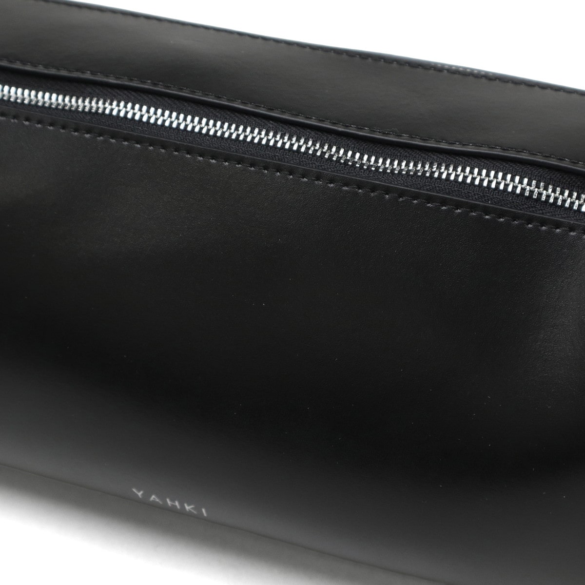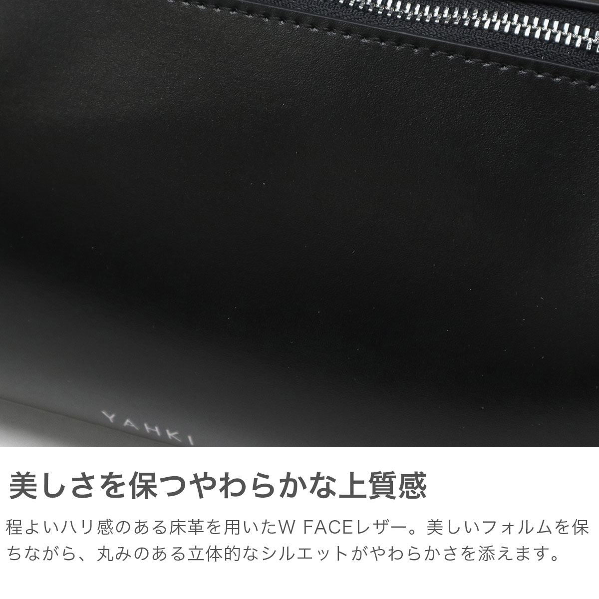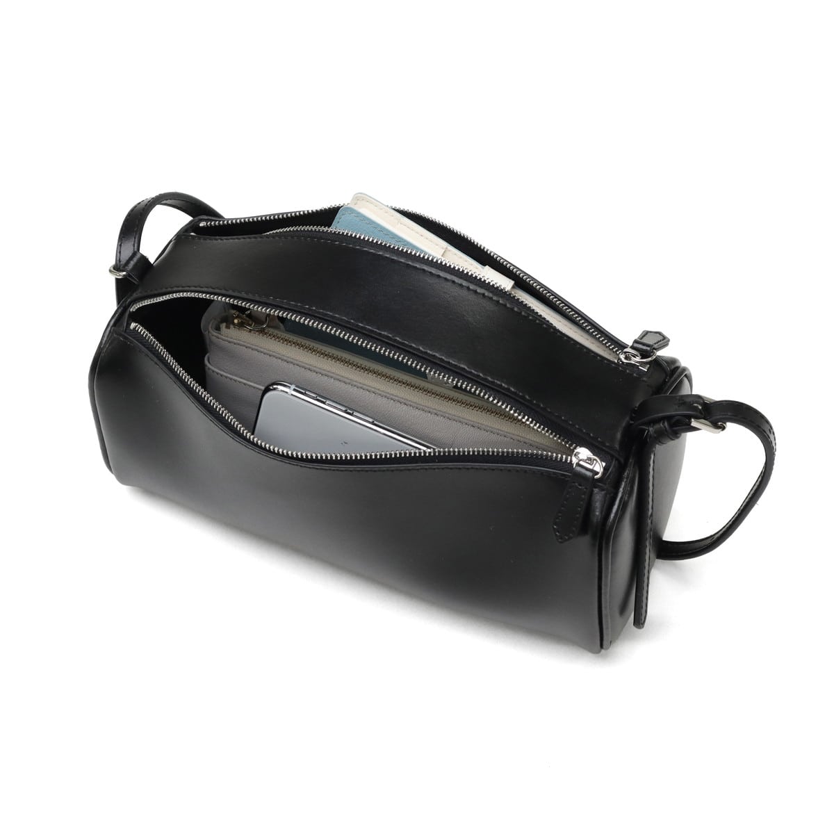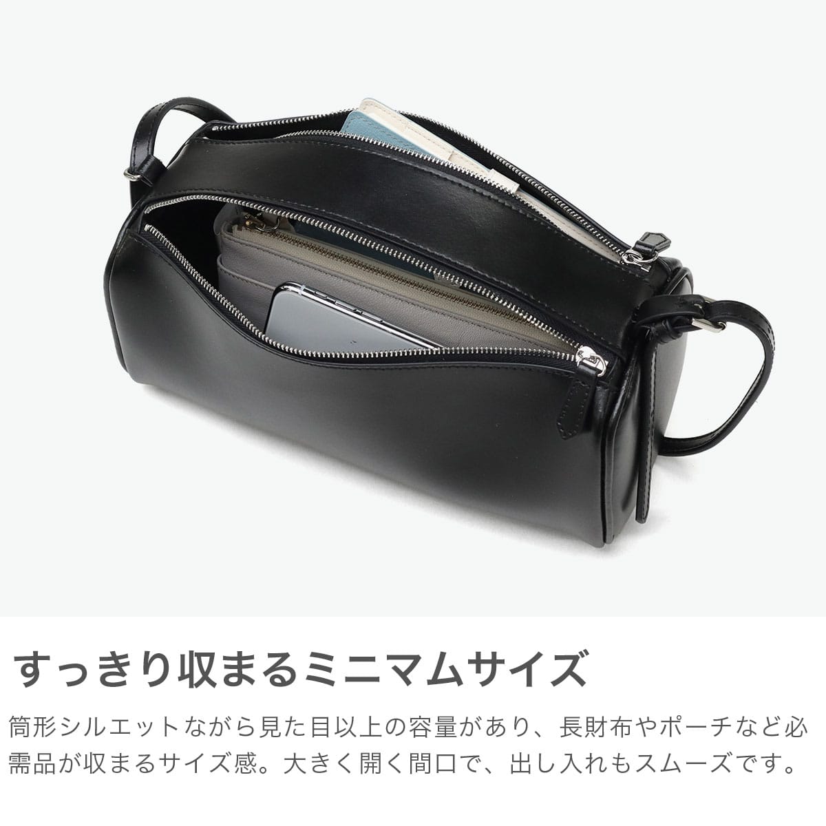 W FACEレザーの品のある艶が際立つハンドバッグ。すっきりとした横長フォルムになだらかな丸みを持たせた、ミニマルなデザインが特徴です。主張しすぎない上品な艶感で、スタイリングに静かな存在感を添えます。筒形のシルエットは見た目以上に容量があり、長財布やポーチなどの必需品をスマートに収納可能。シンプルで無駄のない佇まいがどんな装いにも自然に寄り添い、デイリーに活躍してくれるアイテムです。