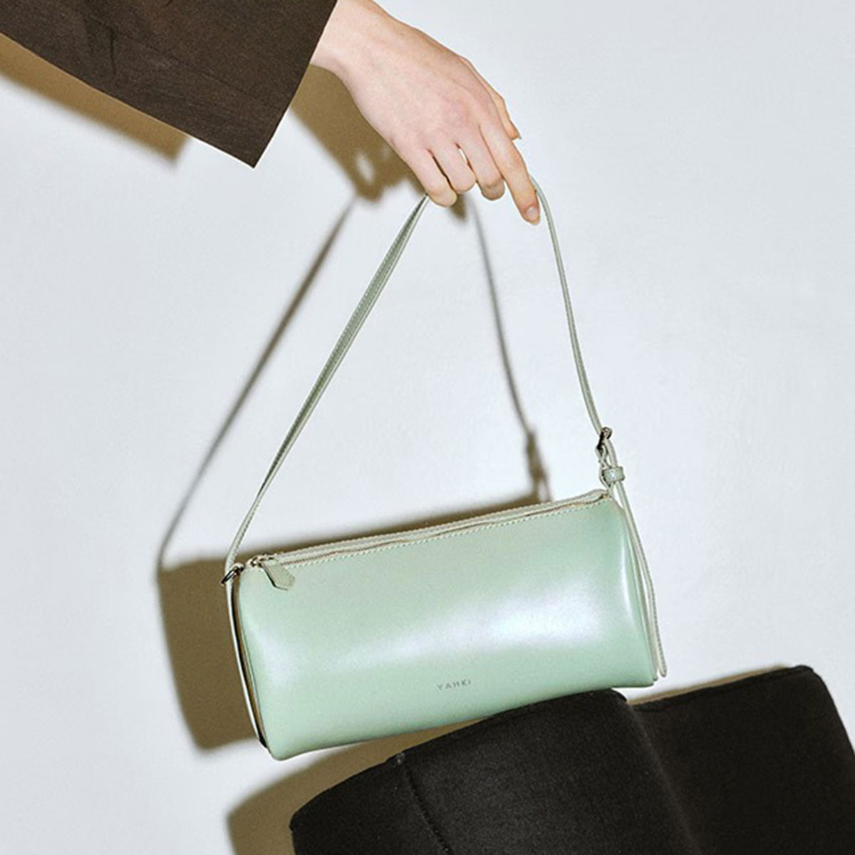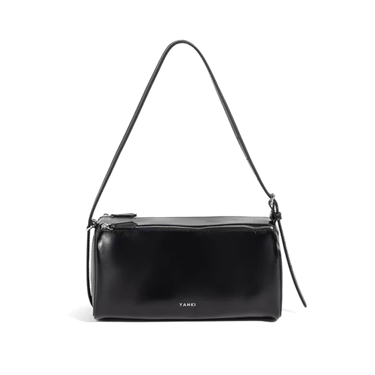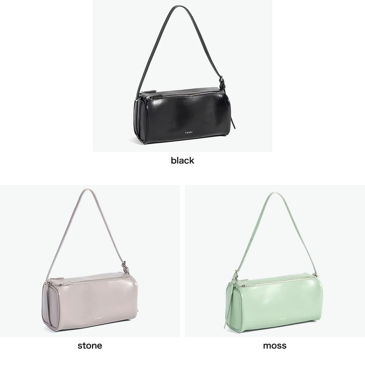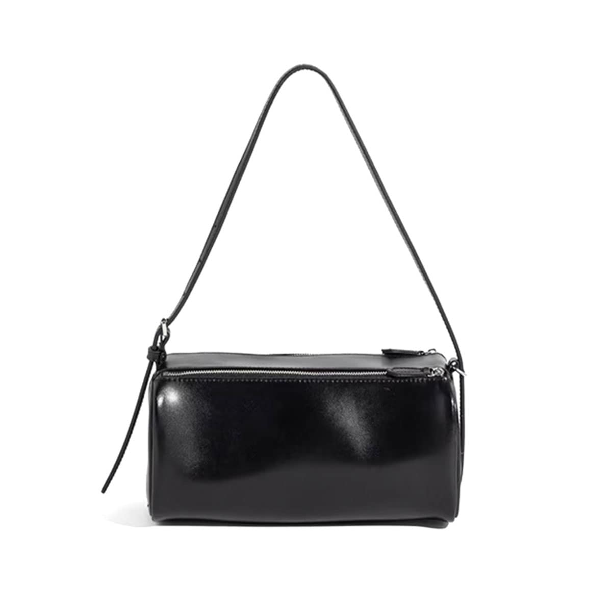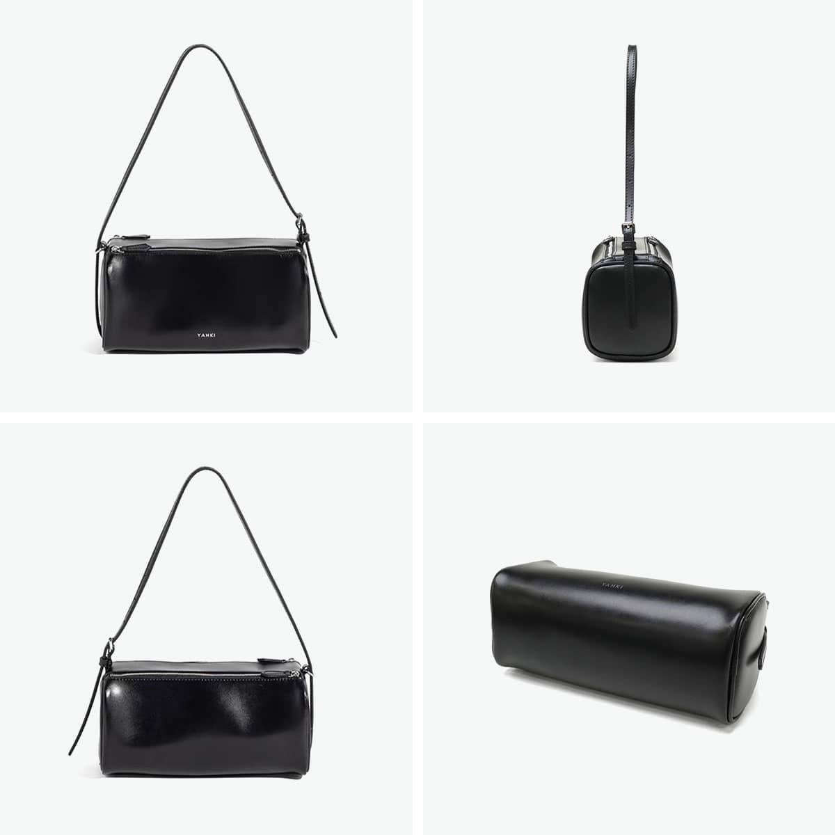 W FACEレザーの品のある艶が際立つハンドバッグ。すっきりとした横長フォルムになだらかな丸みを持たせた、ミニマルなデザインが特徴です。主張しすぎない上品な艶感で、スタイリングに静かな存在感を添えます。筒形のシルエットは見た目以上に容量があり、長財布やポーチなどの必需品をスマートに収納可能。シンプルで無駄のない佇まいがどんな装いにも自然に寄り添い、デイリーに活躍してくれるアイテムです。
