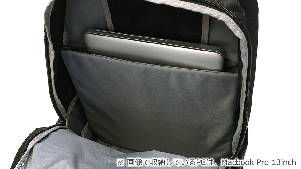 機能性と実用性を最大限に引き出すメインルームに加え、クッション性のある15インチのPC用ポケットを配置。デバイスを持ち運ぶ際も安心です。
