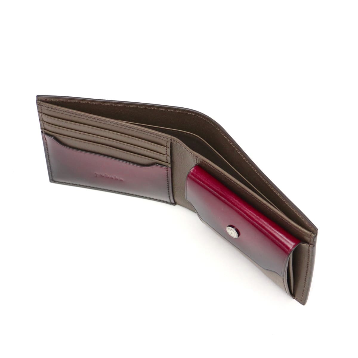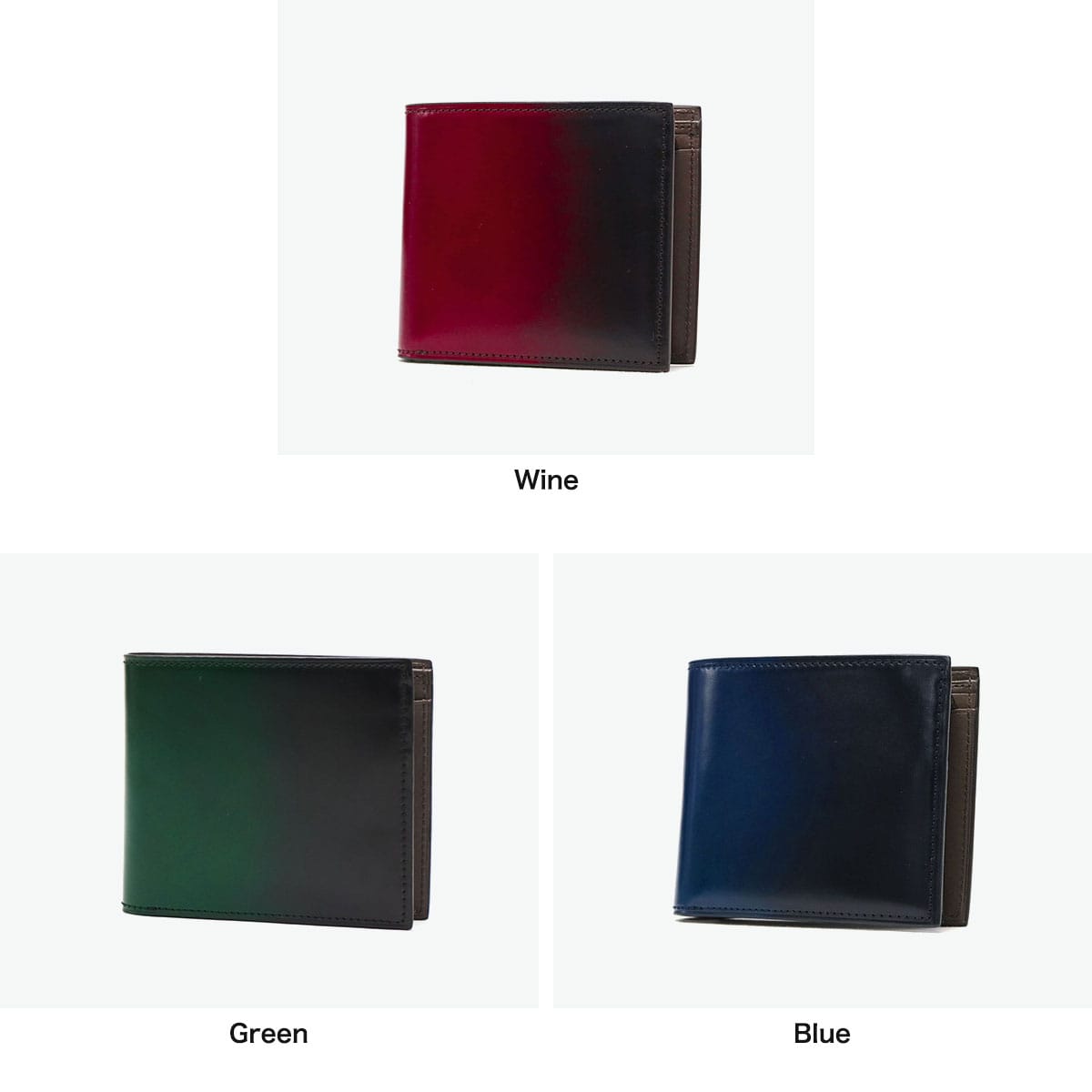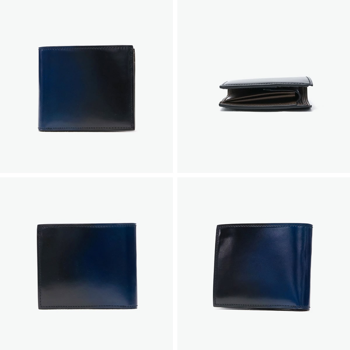 "革のダイヤモンド”コードバンを使用した『Diamant』シリーズの二つ折り財布。世界でも名高いレーデルオガワの選び抜かれたアニリンコードバンを丁寧に手染めすることで、まるで宝石のような光沢と深みが表れ、ダイヤモンドを彷彿させるような耐久性と滑らかさを兼ね備えています。さらに、yuhaku独自の染色技術による透明感のある美しいグラデーションが、圧倒的な存在感と優雅さを際立たせます。