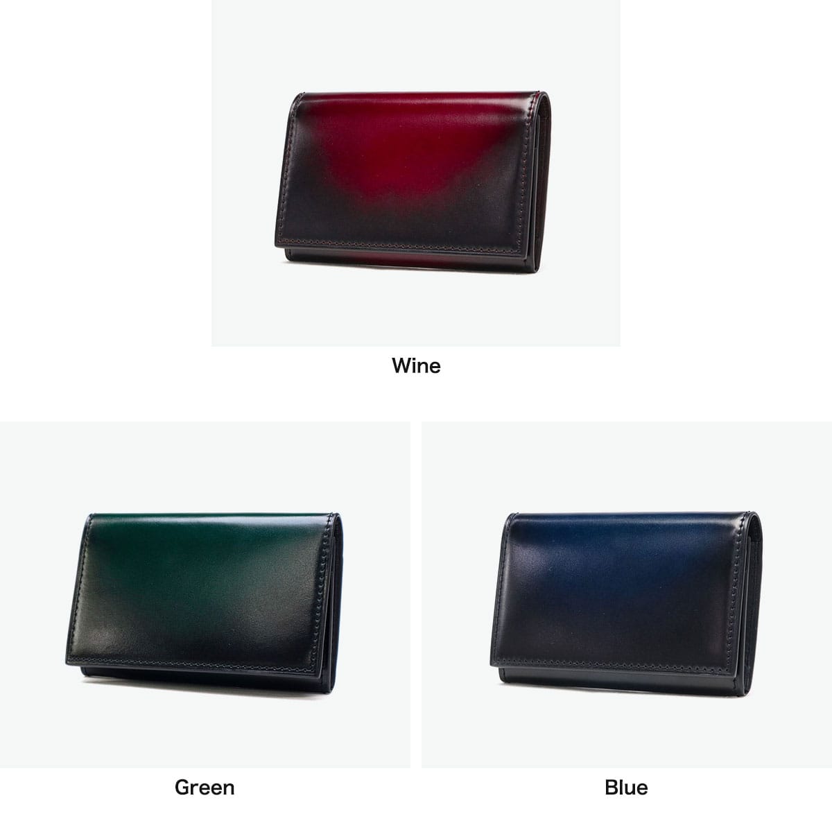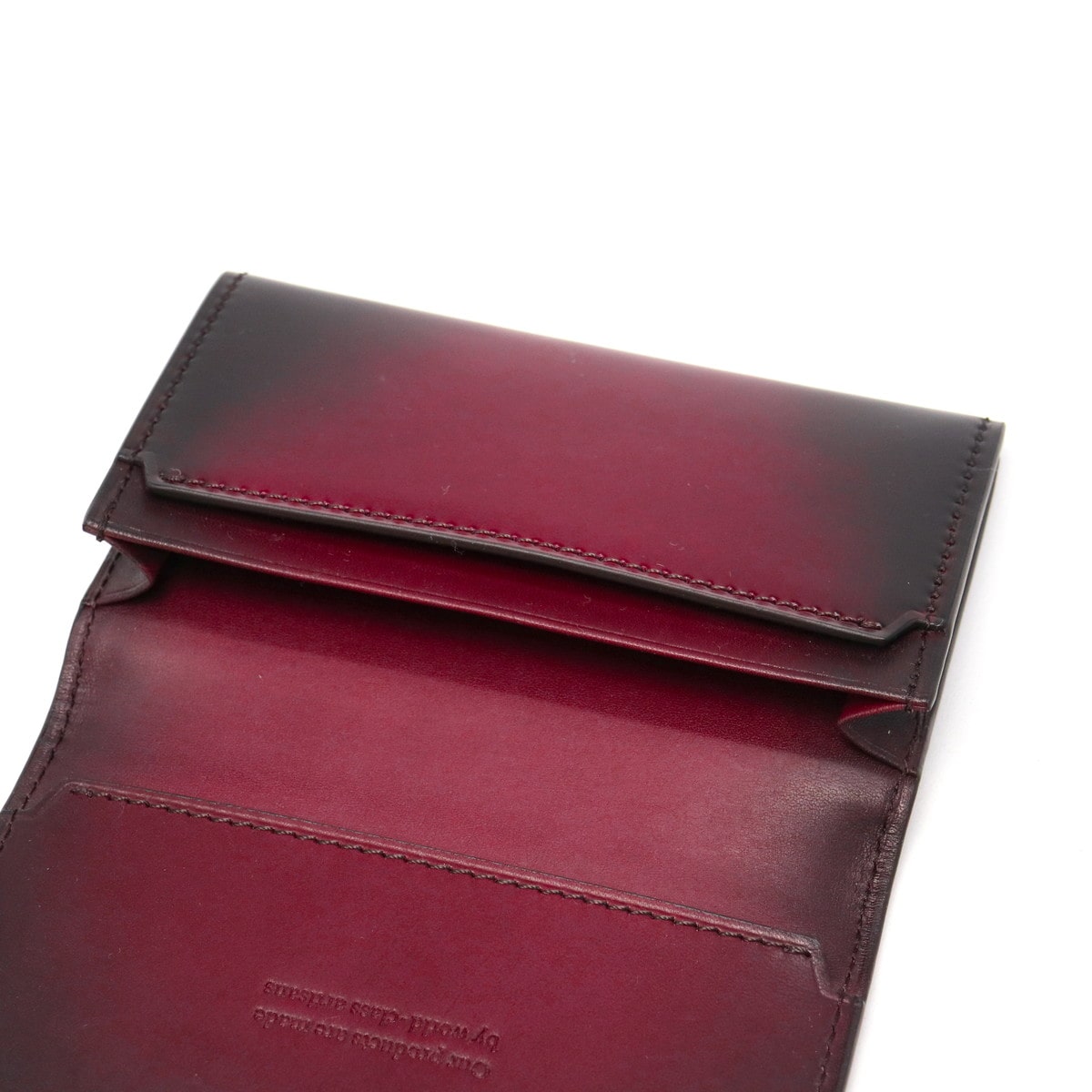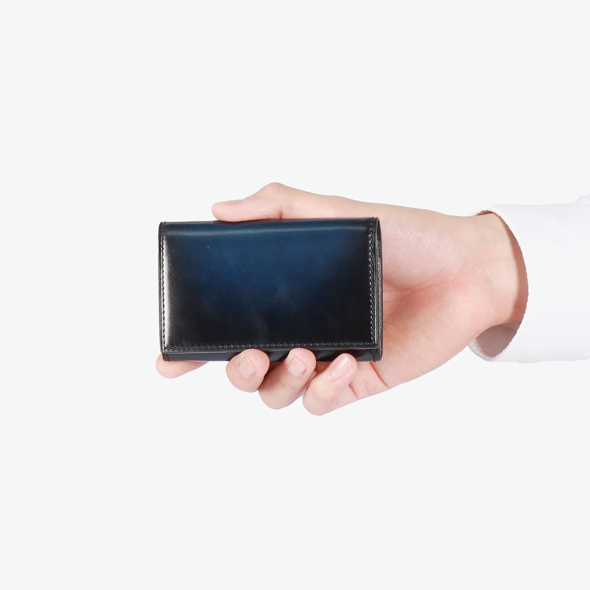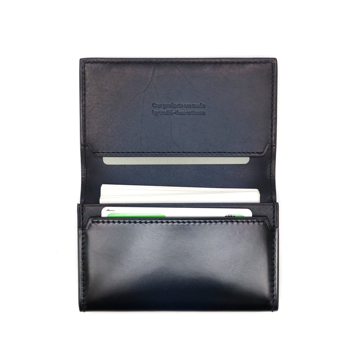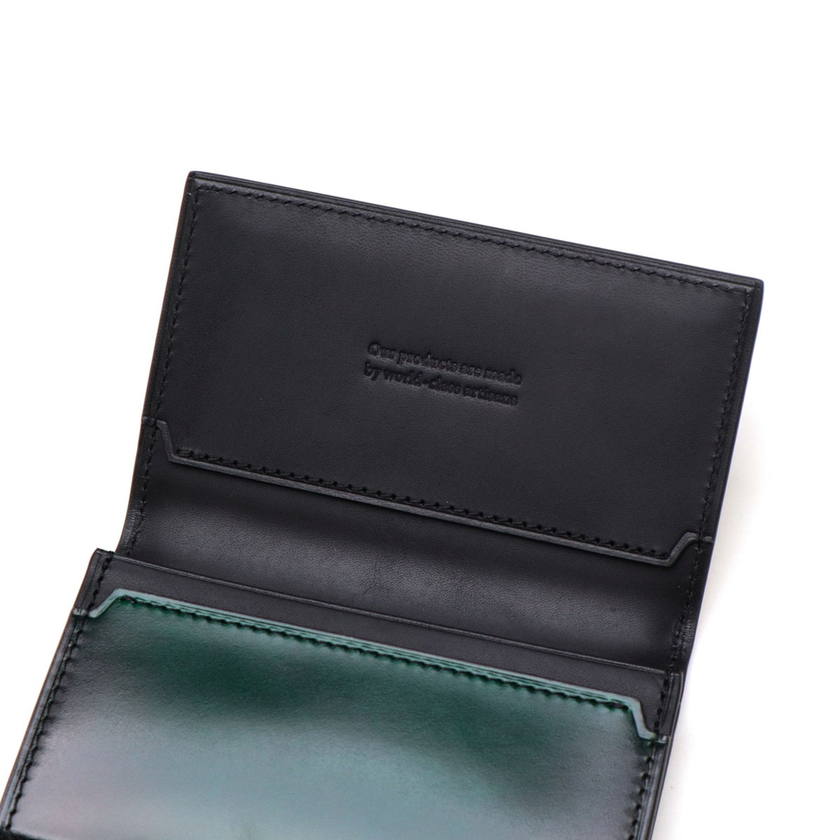 "世界で通用する技術”をテーマとした『Du Monde』シリーズの名刺入れ。最高品質を誇るタンナー、レーデルオガワの手がけるしっとりとした透明感が美しいアニリン染めコードバンを使用。布地を使わない総革仕様の贅沢なつくりで、使うほどに手に馴染みます。yuhakuの染色技術に加え、カットラインやステッチといったディテールまで、職人技を余すところなく発揮したこだわりの逸品です。