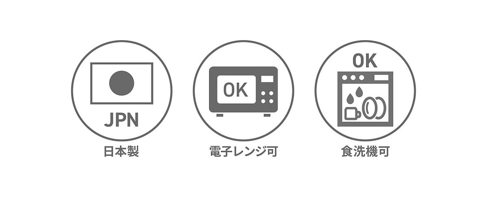 電子レンジ対応、食器洗浄機対応、食器乾燥機対応