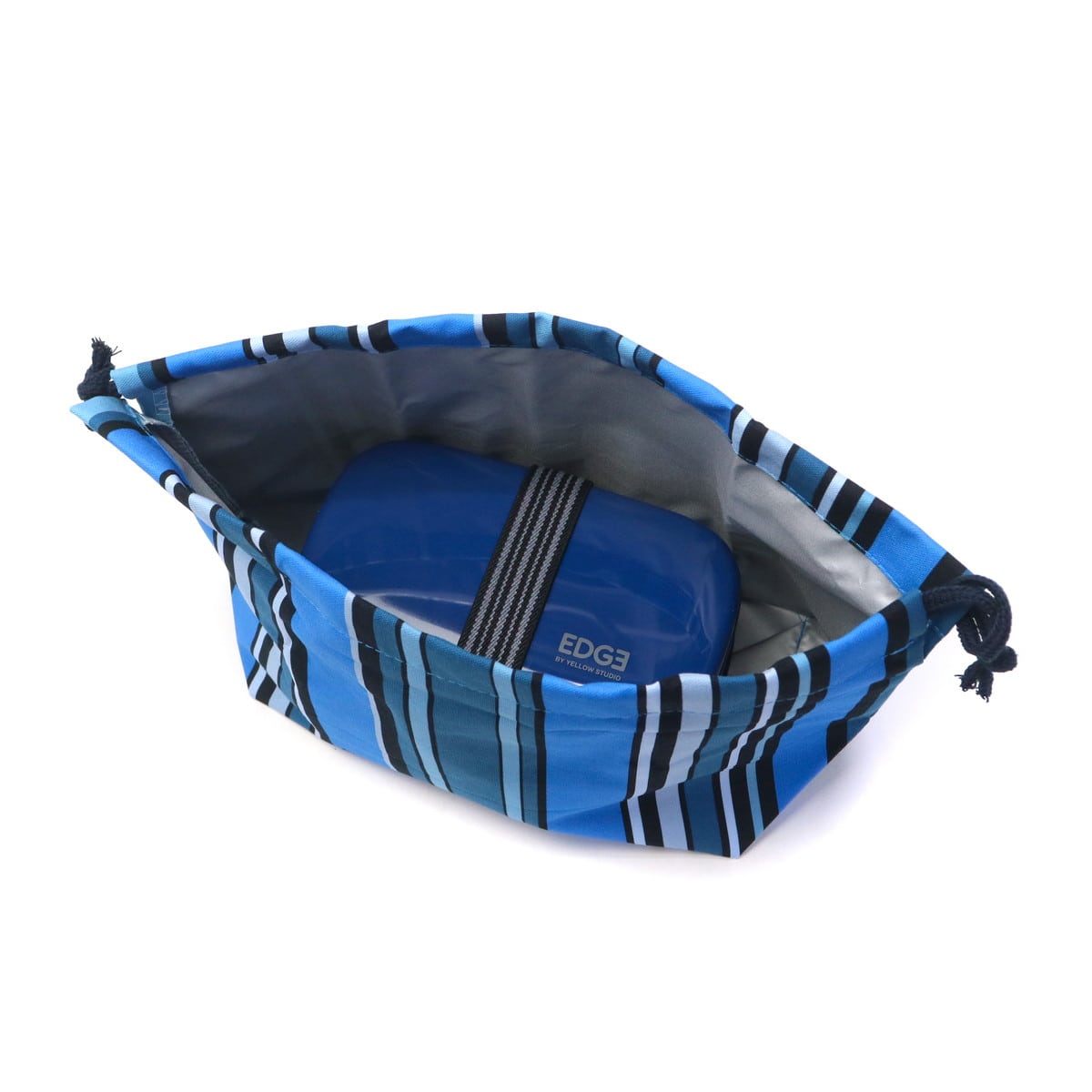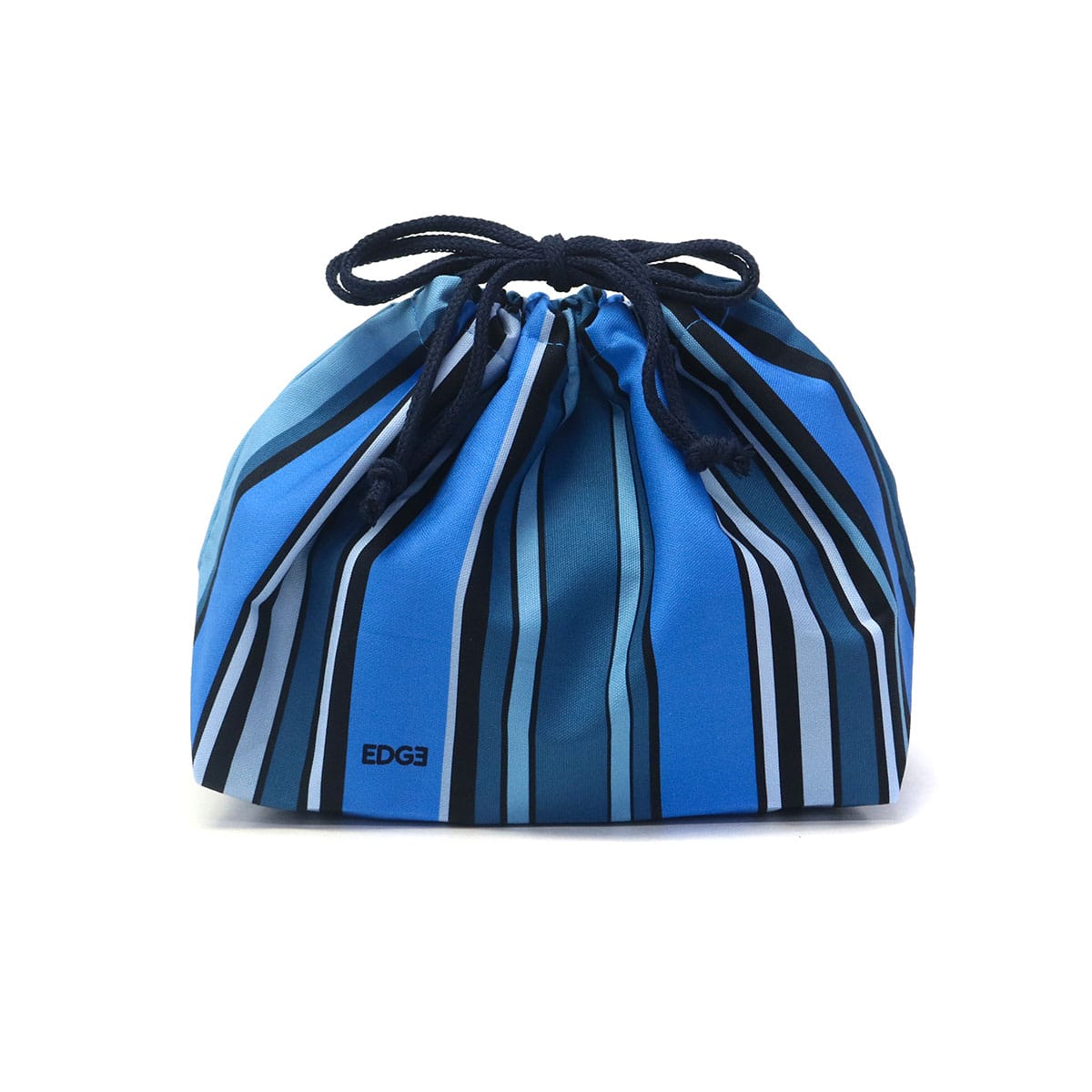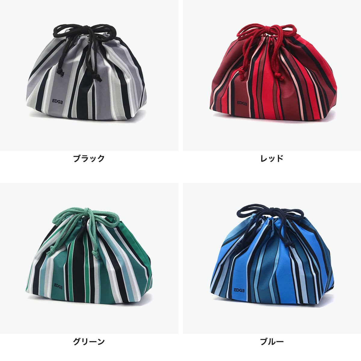 メンズのためのカラフルランチとして長年愛され続けるシリーズ「EDGE エッジ」の巾着ランチポーチ。幅広い世代の男性が愛用できるシンプル&スモーキーなカラーリングで、ストライプのラインデザインがランチタイムを彩ります。