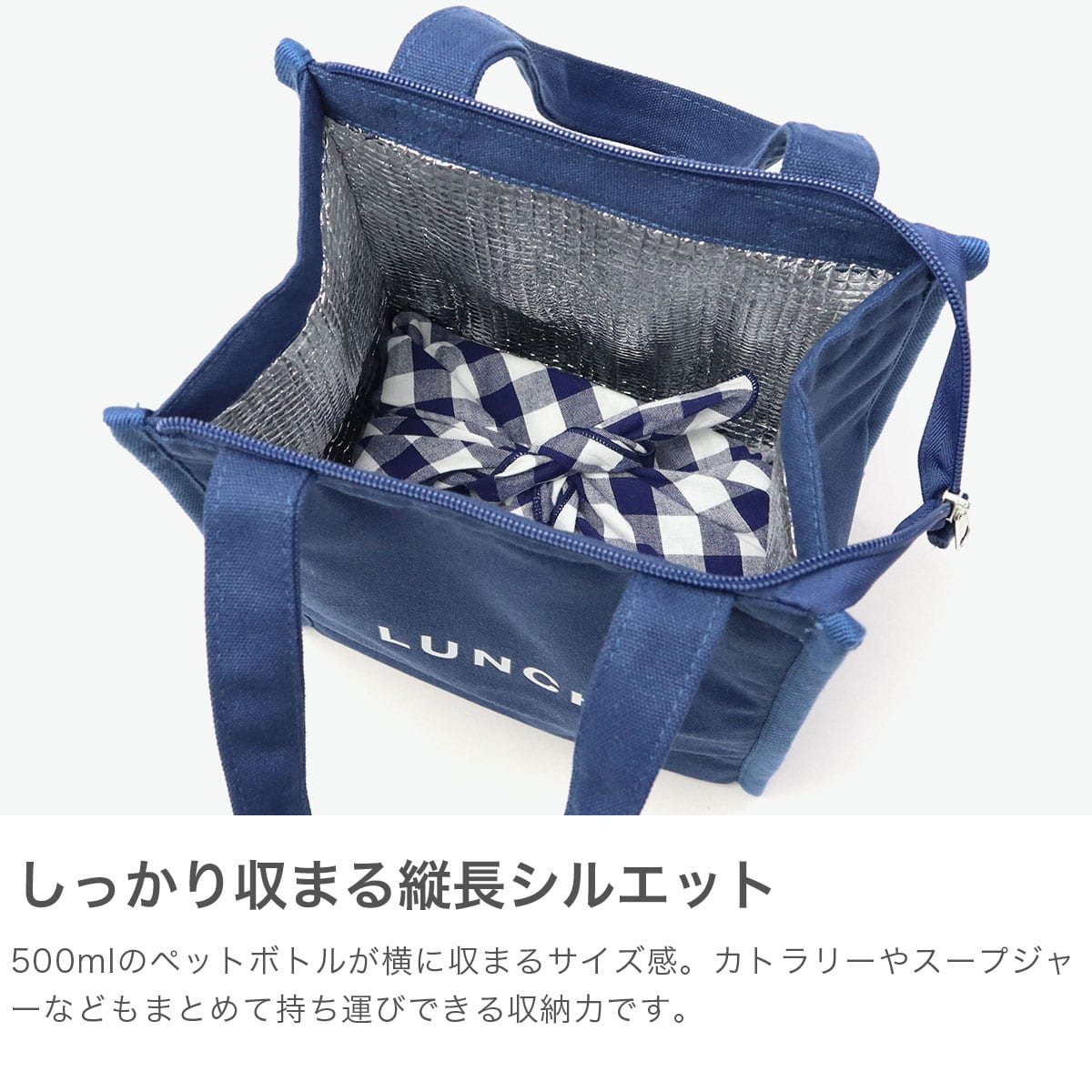 ランチタイムのお供として長く活躍するスタンダードなデザインが人気の「time for LUNCH」シリーズ。こちらは保冷効果付きのランチバッグです。お弁当箱はもちろん、カトラリーや飲み物なども一緒に収まる大きさで、デイリー使いにぴったりの仕上がりとなっています。