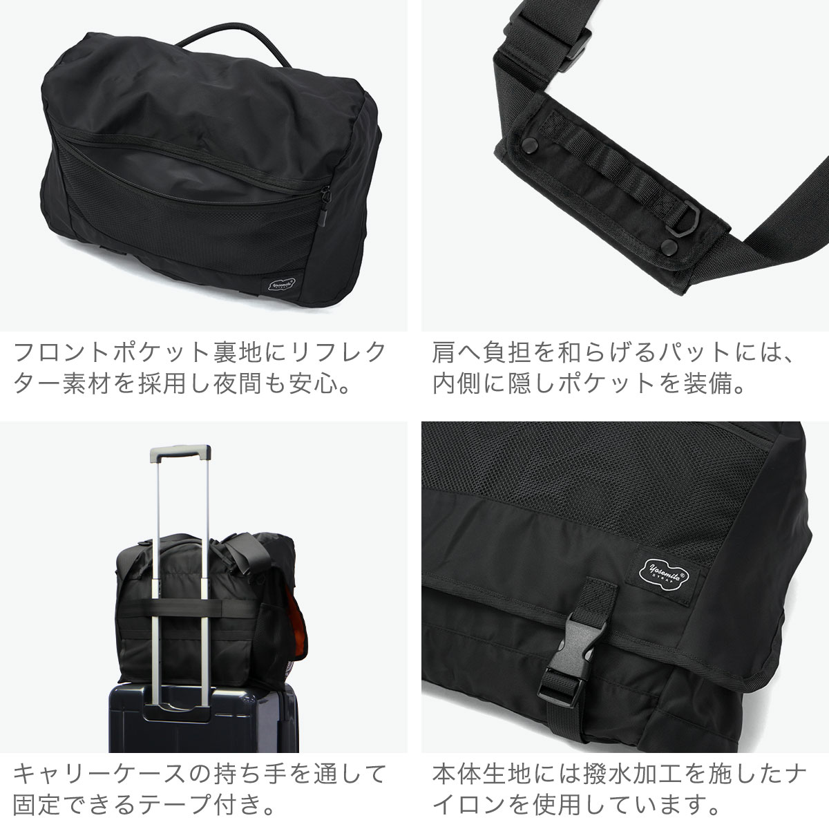 YOSEMITE STRAPから、容量拡張が可能な高機能メッセンジャーバッグが登場。撥水ナイロン素材を採用し、通勤や旅行、アウトドアまで幅広く対応します。PC対応クッションポケットを備え、視認性と利便性を向上。日本製ナイロンロープの持ち手やキャリーオン機能も搭載し、日常からトラベルまで快適に活躍します。