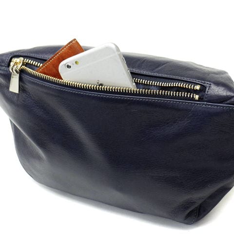 メイン収納部は、お財布やパスケース、キーケースなどをコンパクトに収められるサイズ感。開口部が広めに設計されていますので、視認性に優れ、使い勝手の良い設計となっています。また、外側の背面にはジップポケットを設け、使用頻度の高いアイテムを直ぐに取り出せる構造にしました。