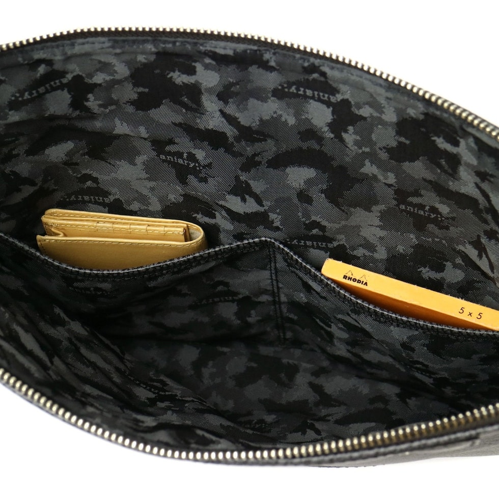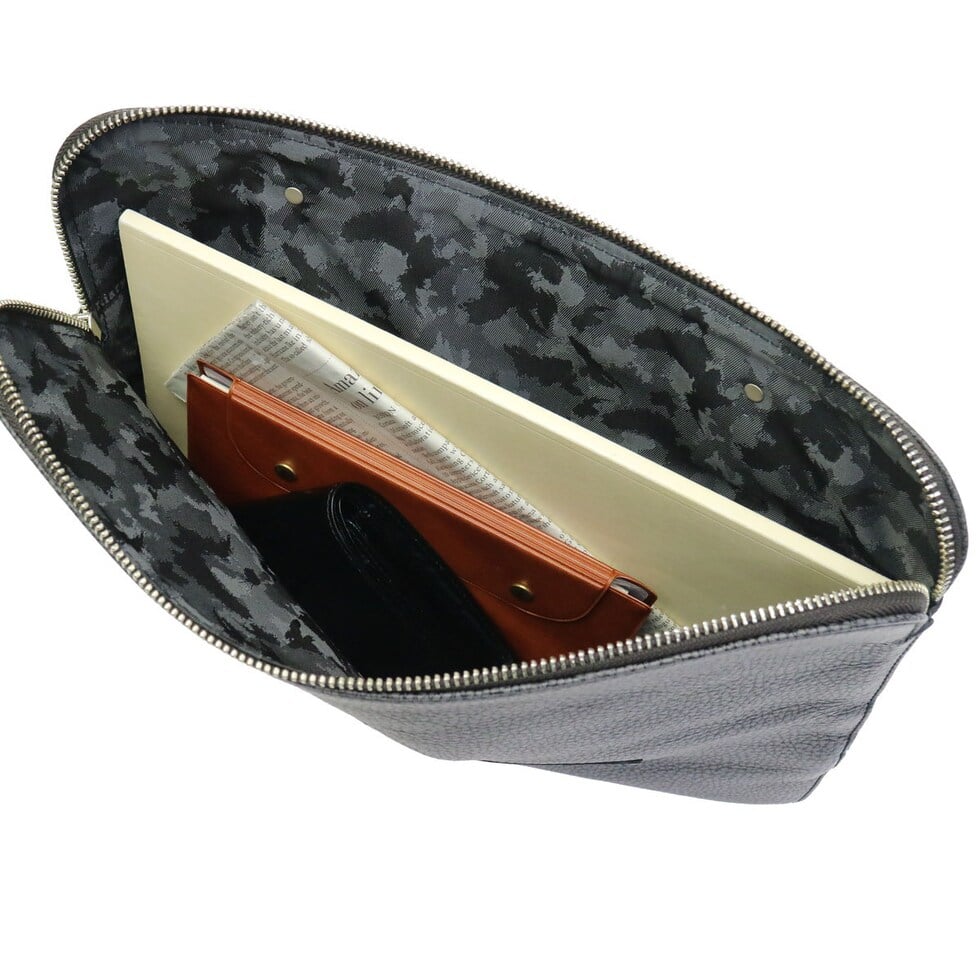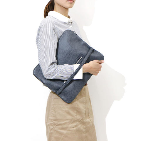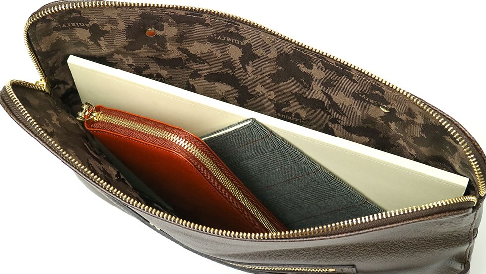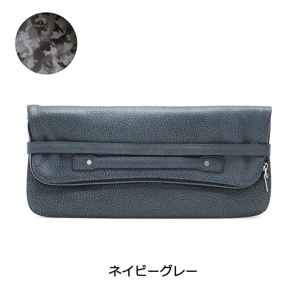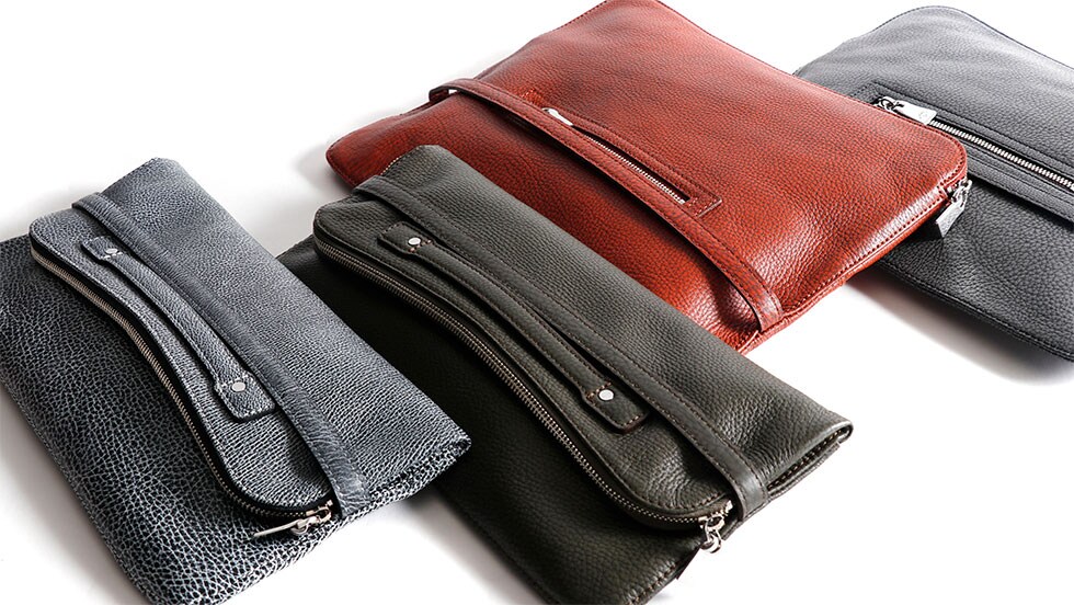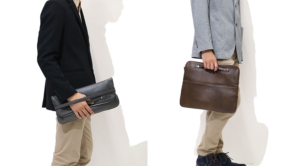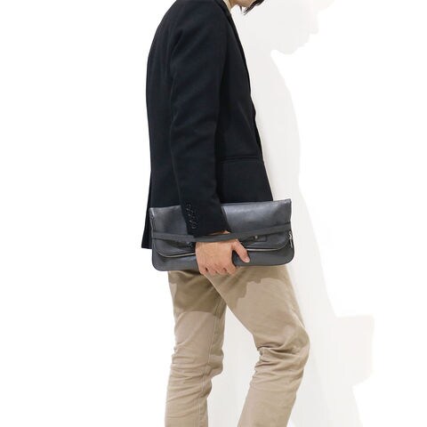 しなやかで、軽い、グラインドレザーを使用したクラッチバック。折りたたんでコンパクトに、伸ばして容量を増やしたりと、多彩な持ち方をしていただくことが可能です。