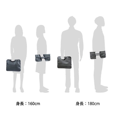 折りたたんで使用するのはもちろん、伸ばして使用していただくとA4サイズが入る大きさに変更できます。荷物の量やその日のスタイルで自由に持ち方を変えることができるため、幅広いシーンでお使いいただけます。