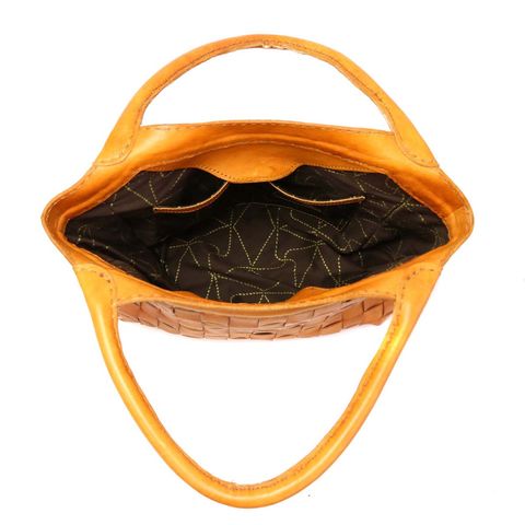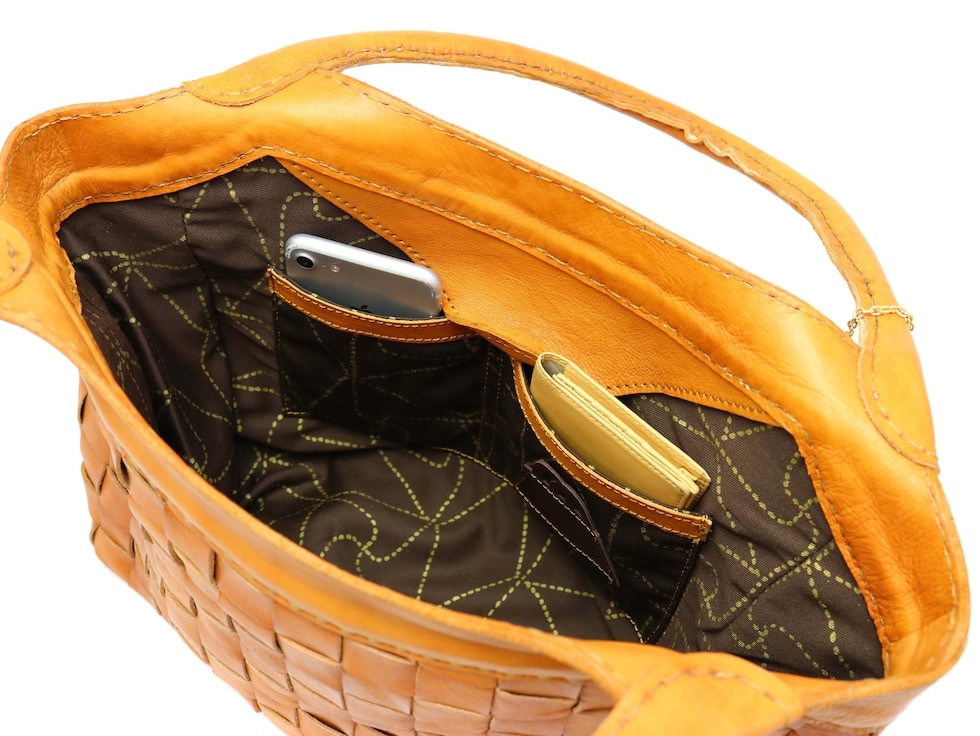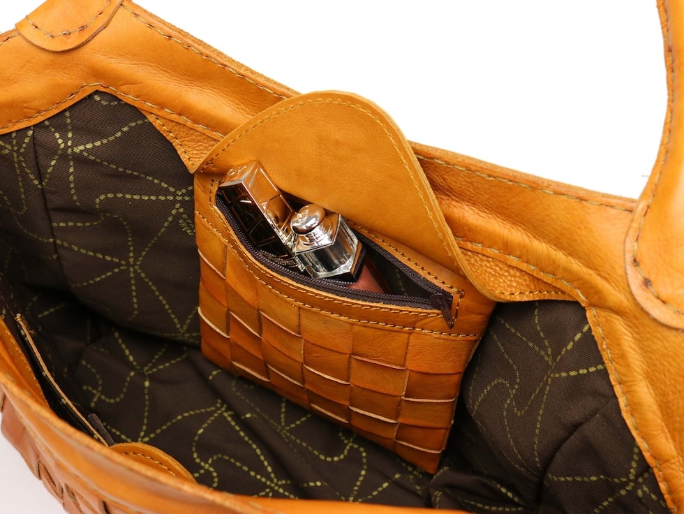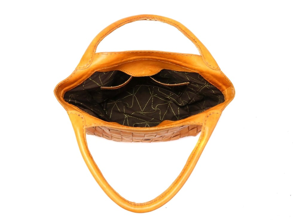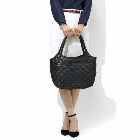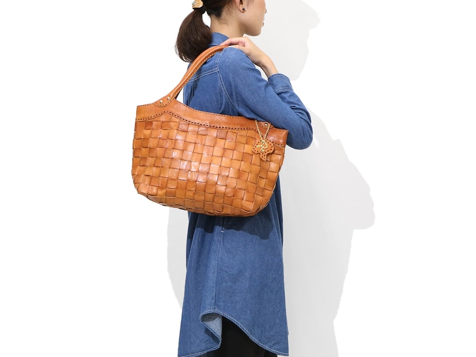 一枚一枚丁寧に編み込まれたメッシュレザーが特徴的な、シンプルで可愛らしいデザインが魅力のトートバッグです。ハンドル部分は柔らかく、持ちやすさにもこだわった作りになっています。また、ハンドルは長めの作りになっているので、手持ちだけでなく肩掛けとしてもお使い頂けます。
