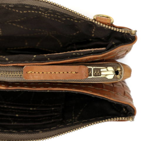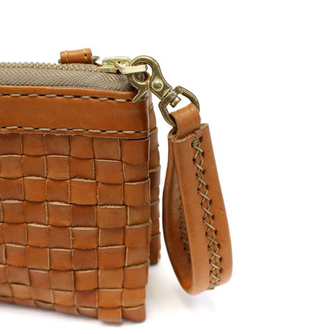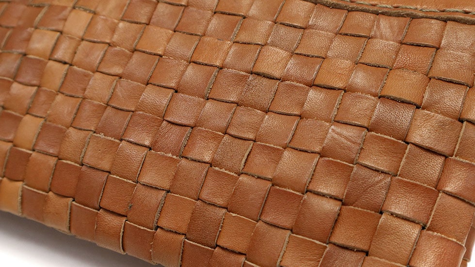 本体は、手染めのヌメ革を一つ一つ心を込めた熟練の職人技で編み上げられたメッシュレザー。使うほどに味わい深く変化する、革の色ツヤを楽しみながらご愛用いただけます。