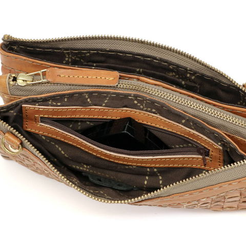 コンパクトサイズでちょっとしたお出掛けに役立つ本体は、収納スペースを3ヶ所備え、アイテムごとの整理整頓を行いやすいのが最大の魅力となっています。内部にはセキュリティー面に優れたファスナー付きポケットや、カードポケットなど充実の収納スペースを設け、実用性の高いデザインになっています。