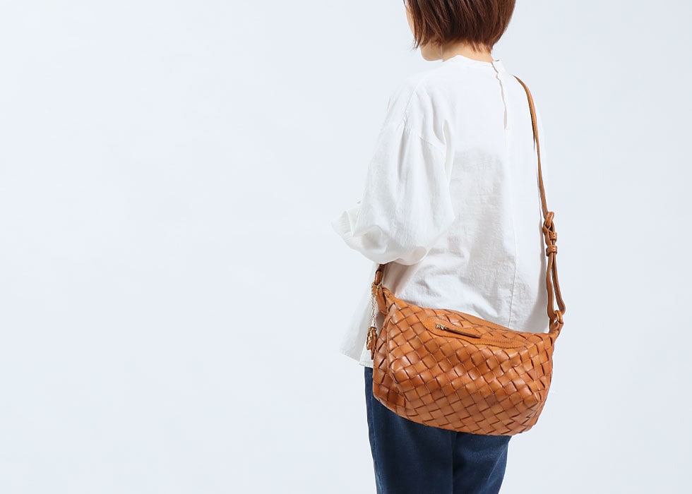 人気シリーズ『anyam nya robita/アニャムニャロビタ』のMサイズのショルダーバッグ。レザーをバイアスに編んだ、格子編みとは違う独特な表情をお楽しみいただけます。大人カジュアルテイストのデザインで普段のコーディネートにアクセントを与えてくれる仕上がりとなっています。
