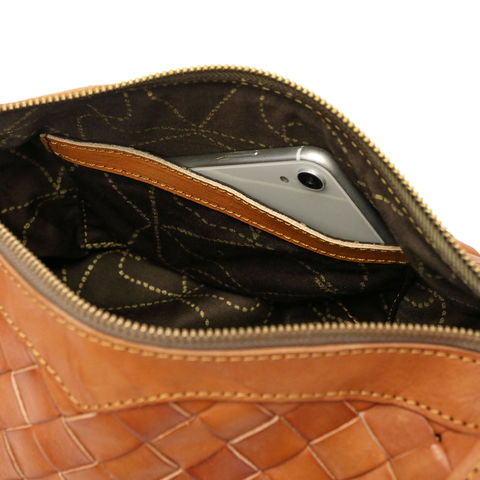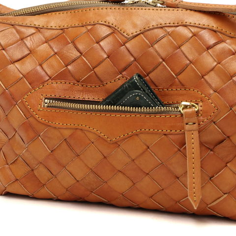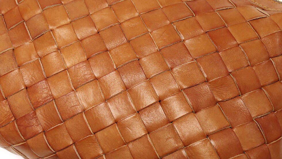 本体は、手染めのヌメ革を一つ一つ心を込めた熟練の職人技で編み上げられたメッシュレザー。使うほどに味わい深く変化する、革の色ツヤを楽しみながらご愛用いただけます。