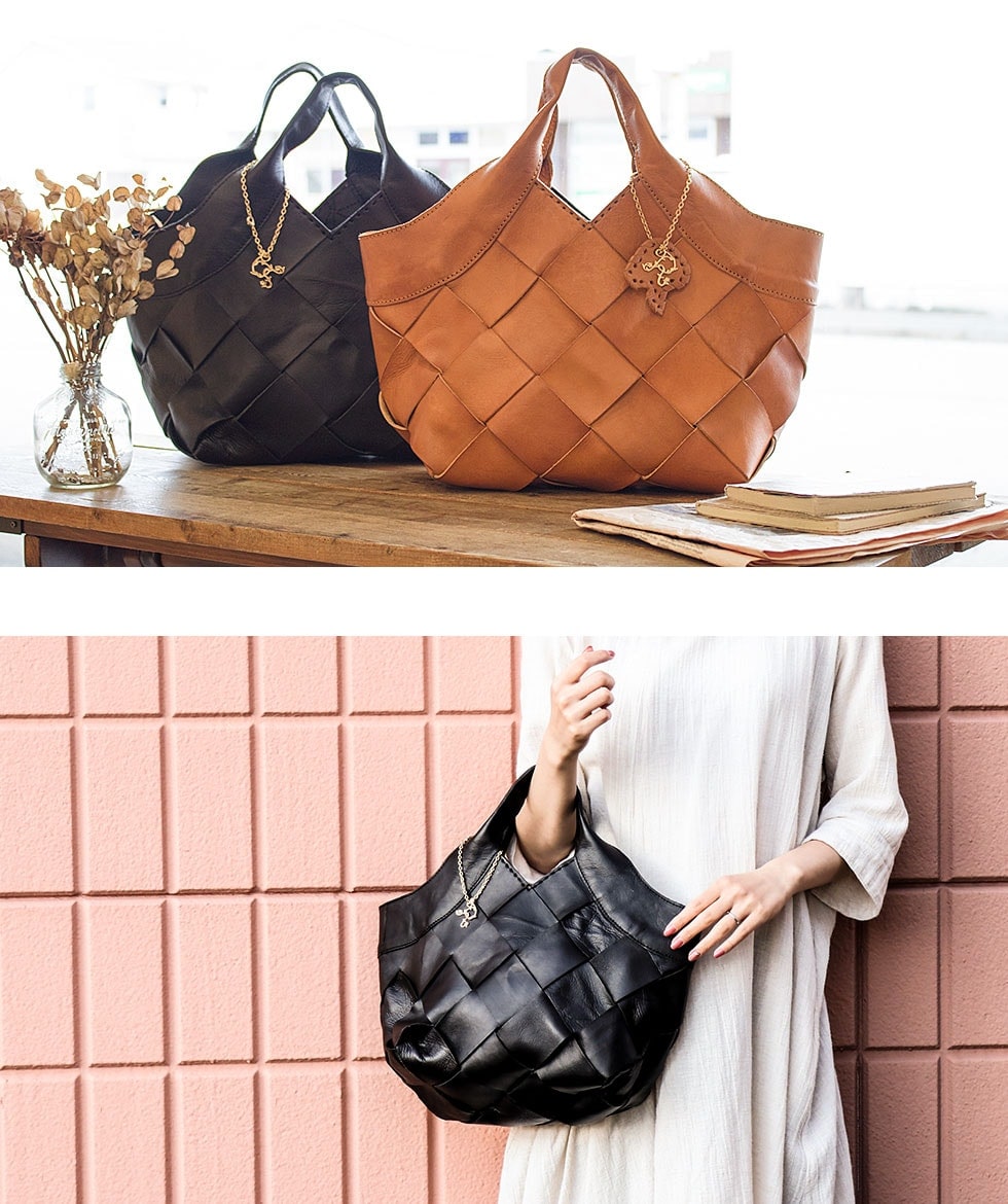 robitaの中でも15年以上続くロングランシリーズ「anyam nya robita」のトートバッグ。斜めに編み込まれた幅広のメッシュレザーが特徴で、手の込んだ過程から生まれるアンティーク感が魅力的です。どんなスタイリングにも合わせやすいアイテムとなっています。
