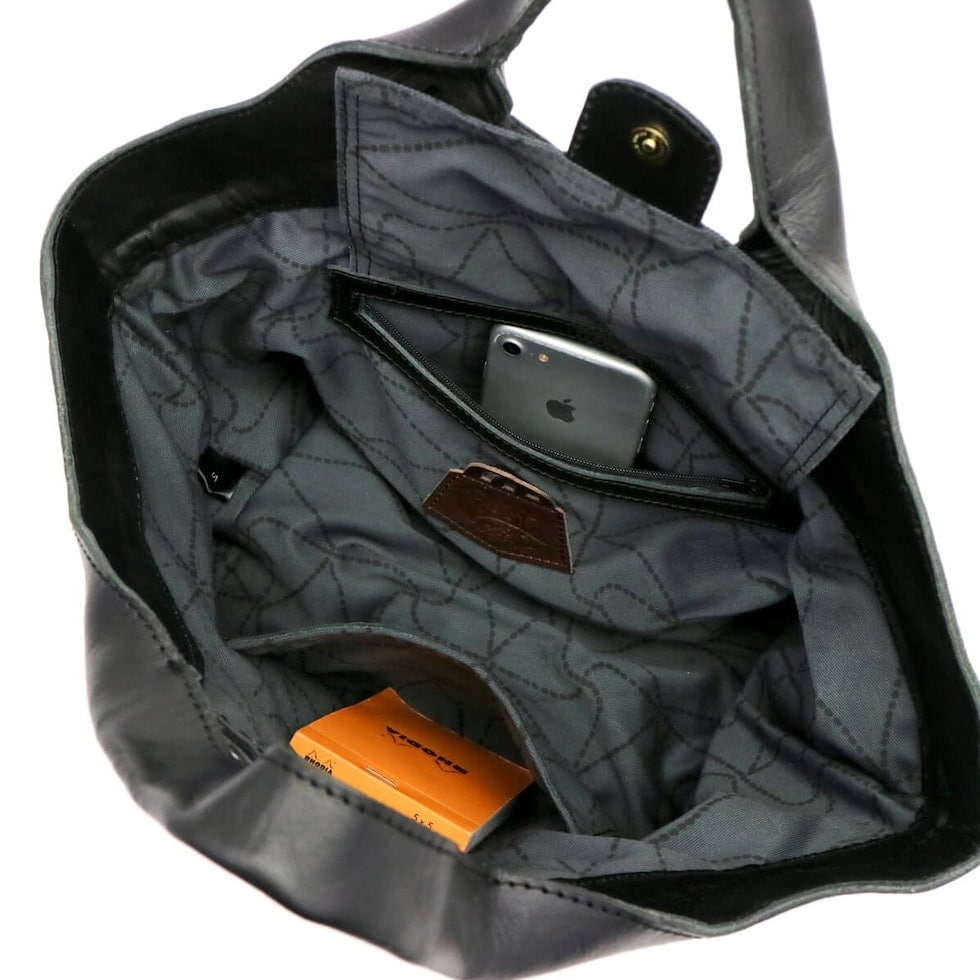 メインルームは普段使いに丁度いいサイズで、財布やスマートフォンのほかにも余裕を持って荷物を収納できる大きさです。また内側には3つのポケットが設けられており、小物類の整理整頓も可能となっています。