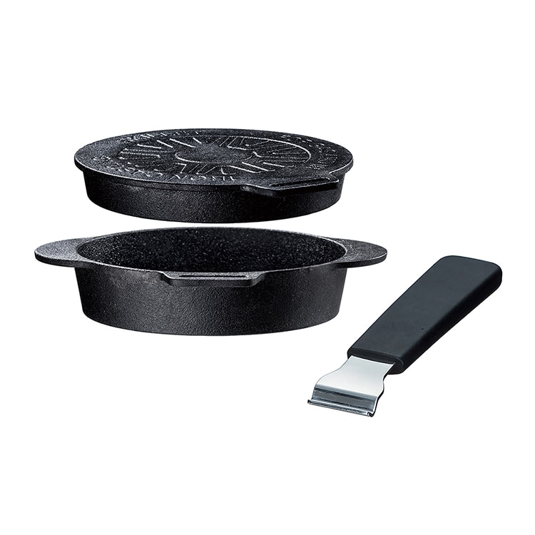 フタ付きのスキレットとして使用でき、フタ裏もフライパンとして使用できる。