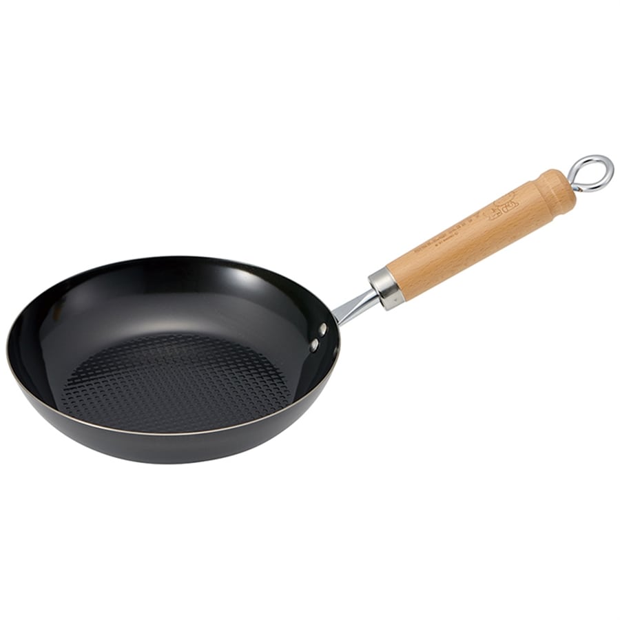 こびりつきにくいエンボス加工が施された鉄製のフライパン。