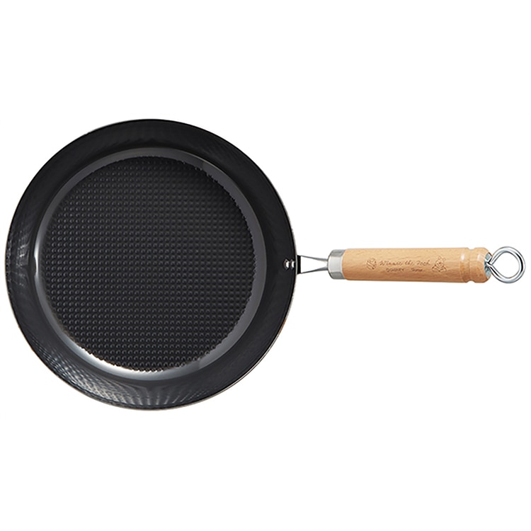 こびりつきにくいエンボス加工が施された鉄製のフライパン。