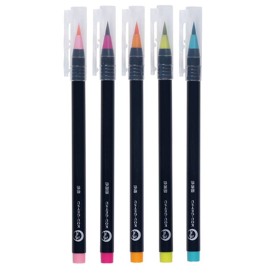 奈良で300年以上続く筆専門の老舗「あかしや」のカラー筆ペン5色セット。