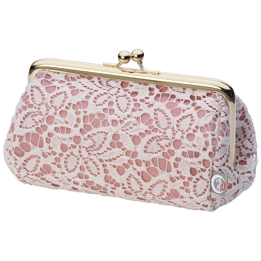 たわら型の可愛らしいシルエットにレースをあしらった、レトロでお洒落ながま口ポーチ