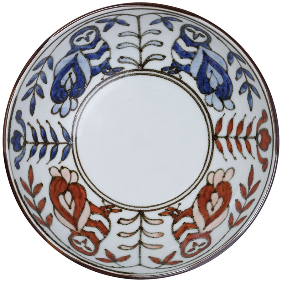 「幸運のシンボル」ふくろうが描かれている6寸鉢。