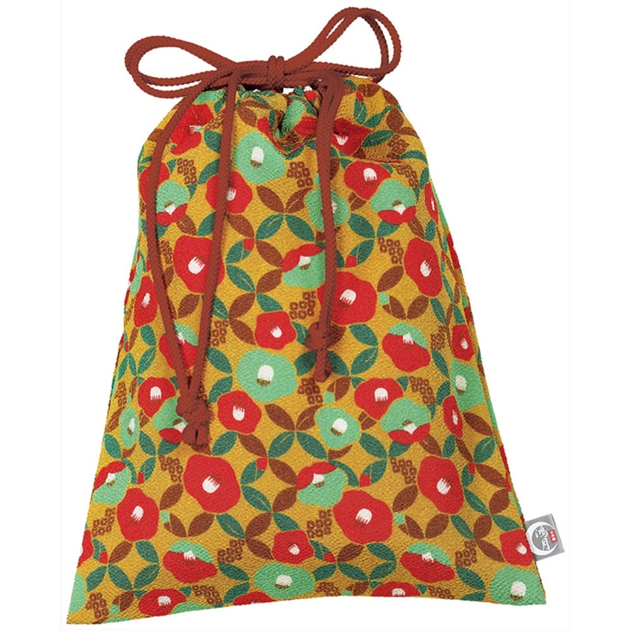 和テイストの生地で作られた巾着。