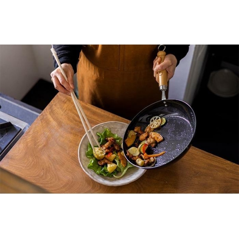 鉄製にしては軽量で扱いやすいフライパン。
