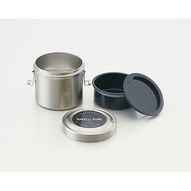 【素材】 本体・フタ/ステンレス(アクリル樹脂塗装)、止め具/ステンレス、中容器・中フタ/ポリプロピレン、パッキン/シリコーンゴム、底板/熱可塑性エラストマー