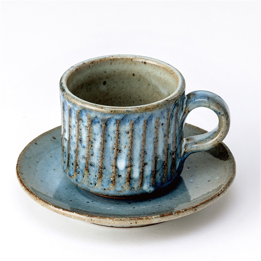 スケーター 青萩彫 カップ&ソーサー (信楽焼) 鴻月 3-3282