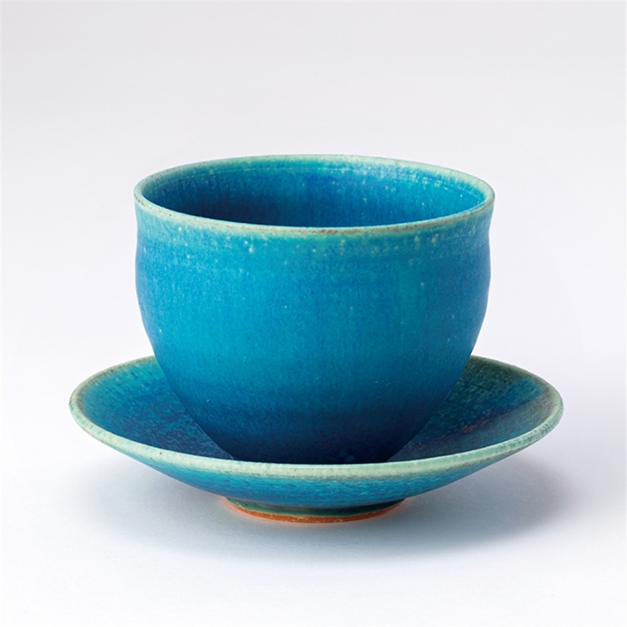鮮やかなターコイズブルーが印象的なお碗とお皿。
