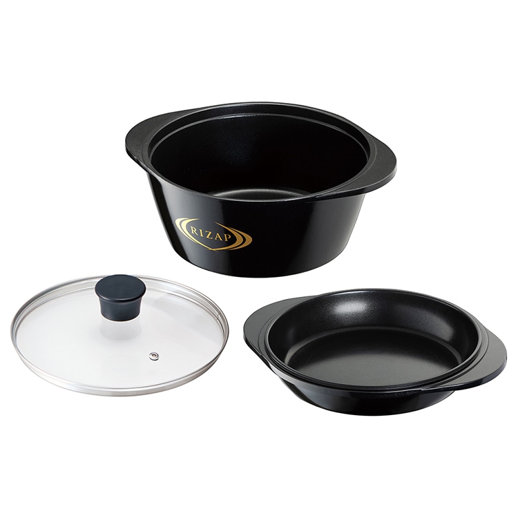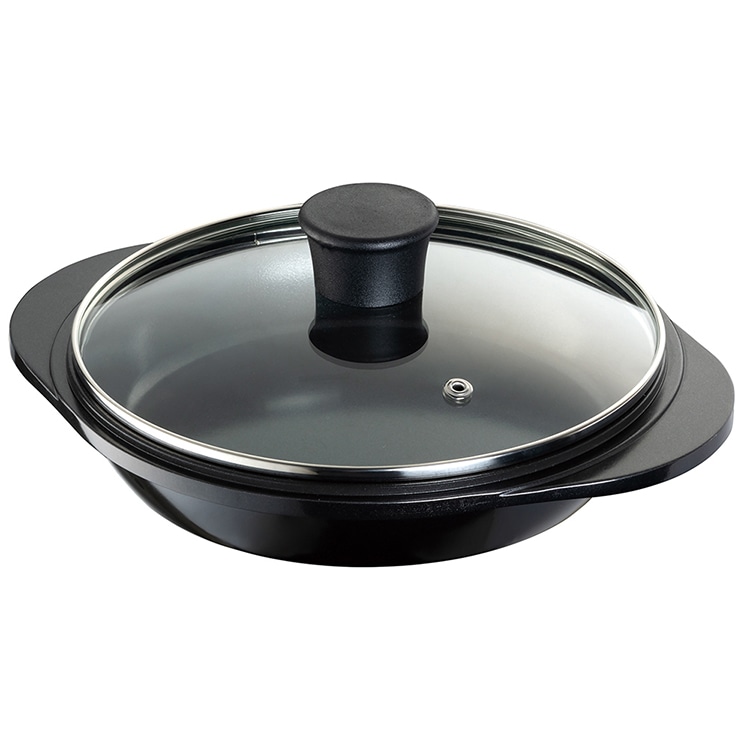 深鍋、浅鍋、ガラス蓋の4通りの組み合わせで様々な調理法をこなせる。