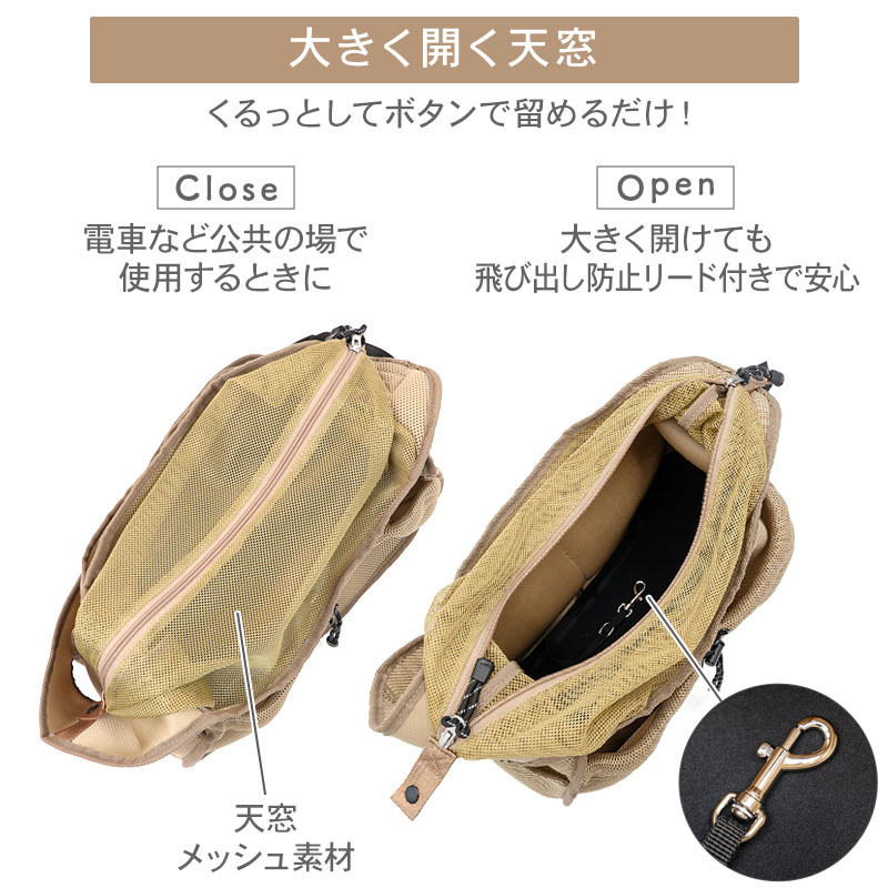 * 高温時・直射日光の当たる場所では絶対にわんちゃんを入れたまま放置しないでください。特に自動車内は高温になります。絶対に、車内にわんちゃんを残したまま車を離れないでください。
