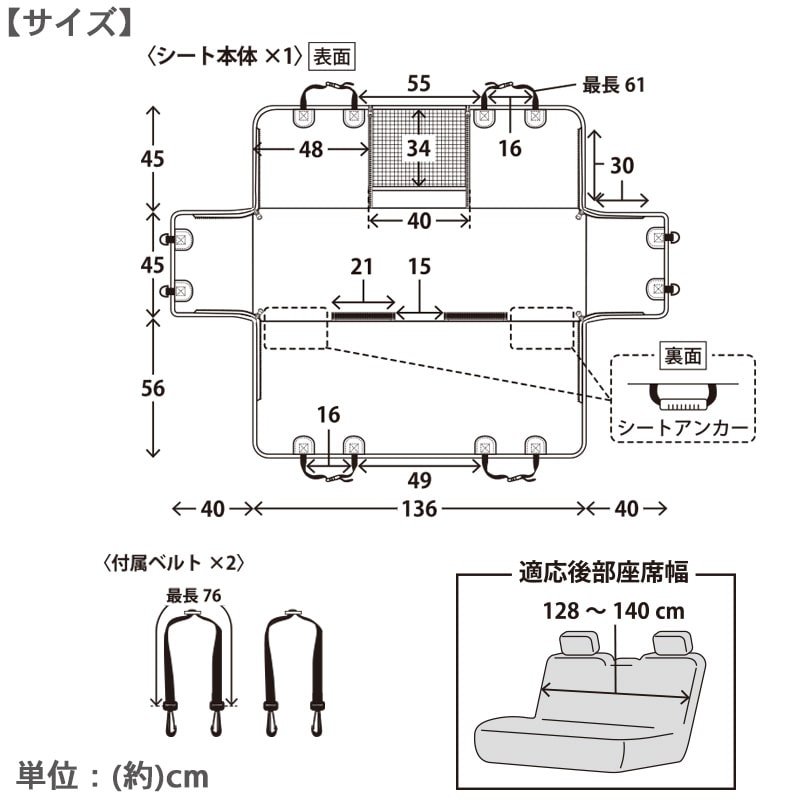 * 後部座席用(適応後部座席幅:128~140cm)。