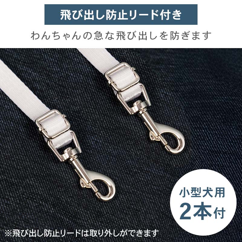 * 必ずわんちゃんの首輪に飛び出し防止リードを付けて飛び出さないように長さを調節してください。