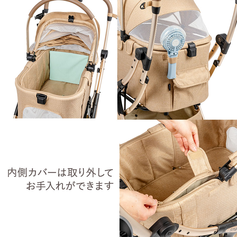 ●本体生地は撥水加工済みで、コット内側カバーは取り外してお手入れ可能。