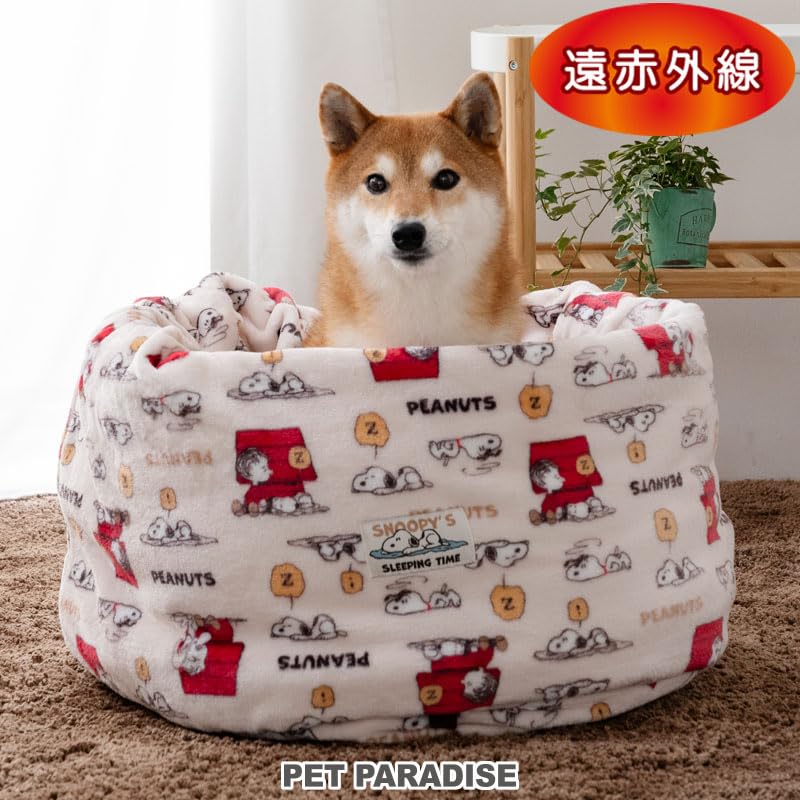 ペットパラダイス 犬 ベッド 秋 筒型 ボア 寝袋 スヌーピー 遠赤外線 うたたね柄 (57×95cm) L ベッド 寝具