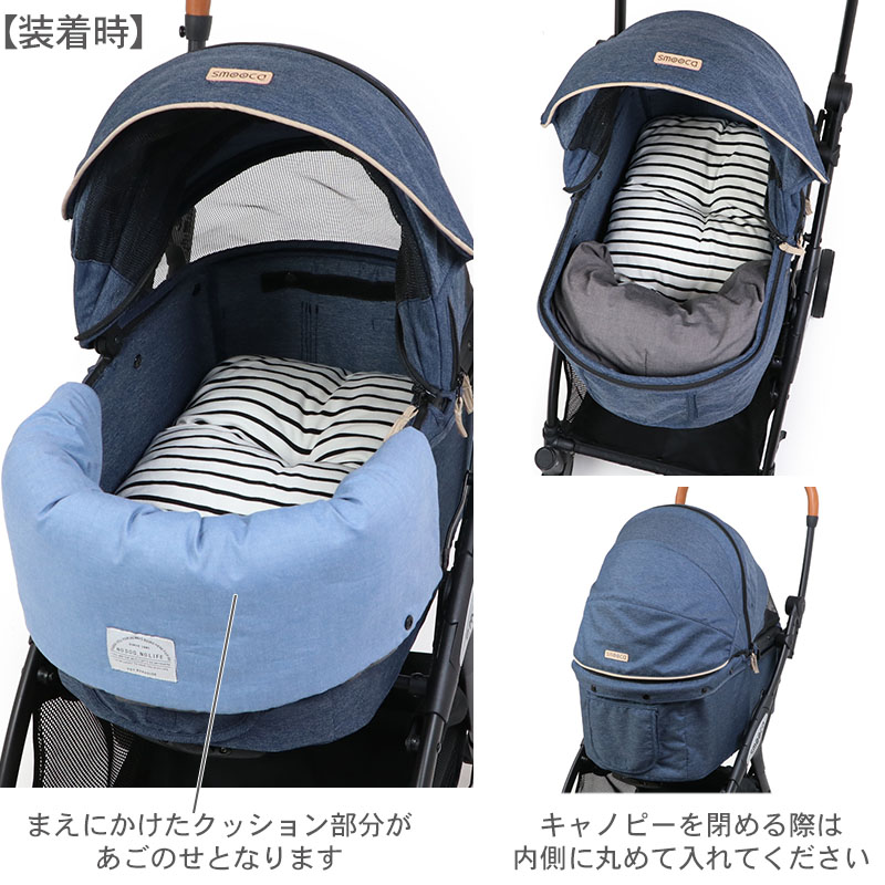 ■特徴 *バスケットの座面にクッションを敷き、顎乗せカバーを縁に掛けてください。