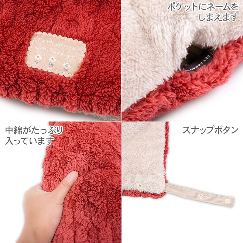 ■特徴 *リバーシブル仕様 *バスケットの座面にクッションを敷き、顎乗せカバーを縁に掛けてください。 【遠赤外線】保温効果のある遠赤外線加工が施された中綿を使用しています。