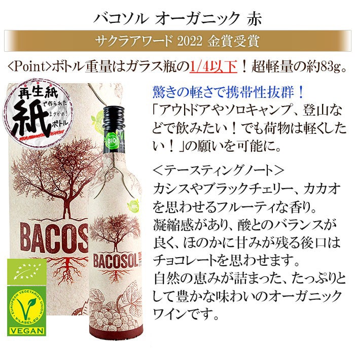 ●バコソル オーガニック 赤 スペイン 750ml 赤