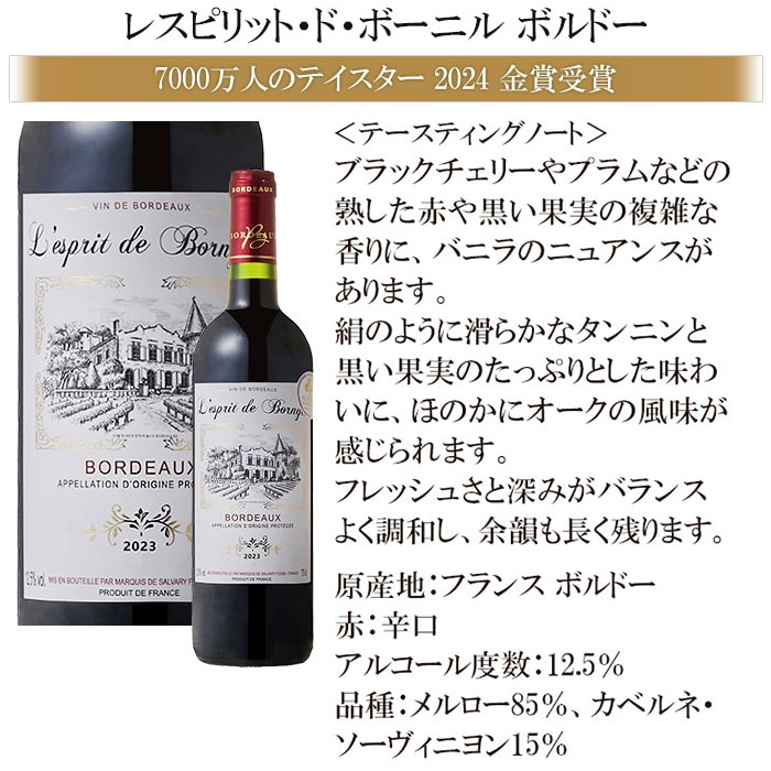 ●☆レスピリット・ド・ボーニル ボルドー フランス 750ml 赤