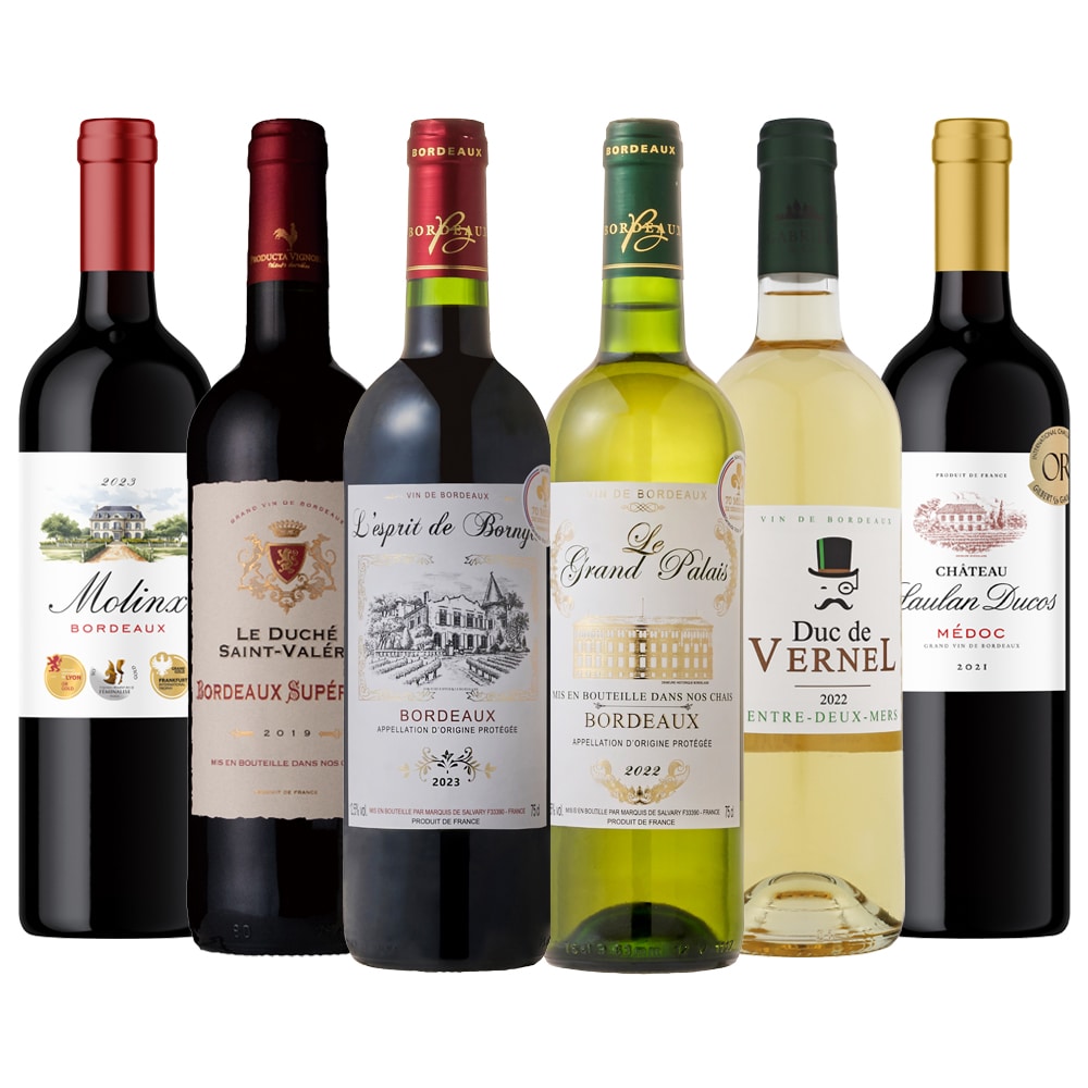 本場ボルドーの実力派ワインを手軽に飲み比べできる贅沢セット!フランス・ボルドーの銘醸地メドックを含む、すべて金賞受賞の赤白ワイン6本セット。