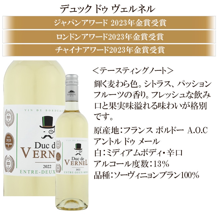 ●デュック ドゥ ヴェルネル ボルドー 白 フランス 750ml 白