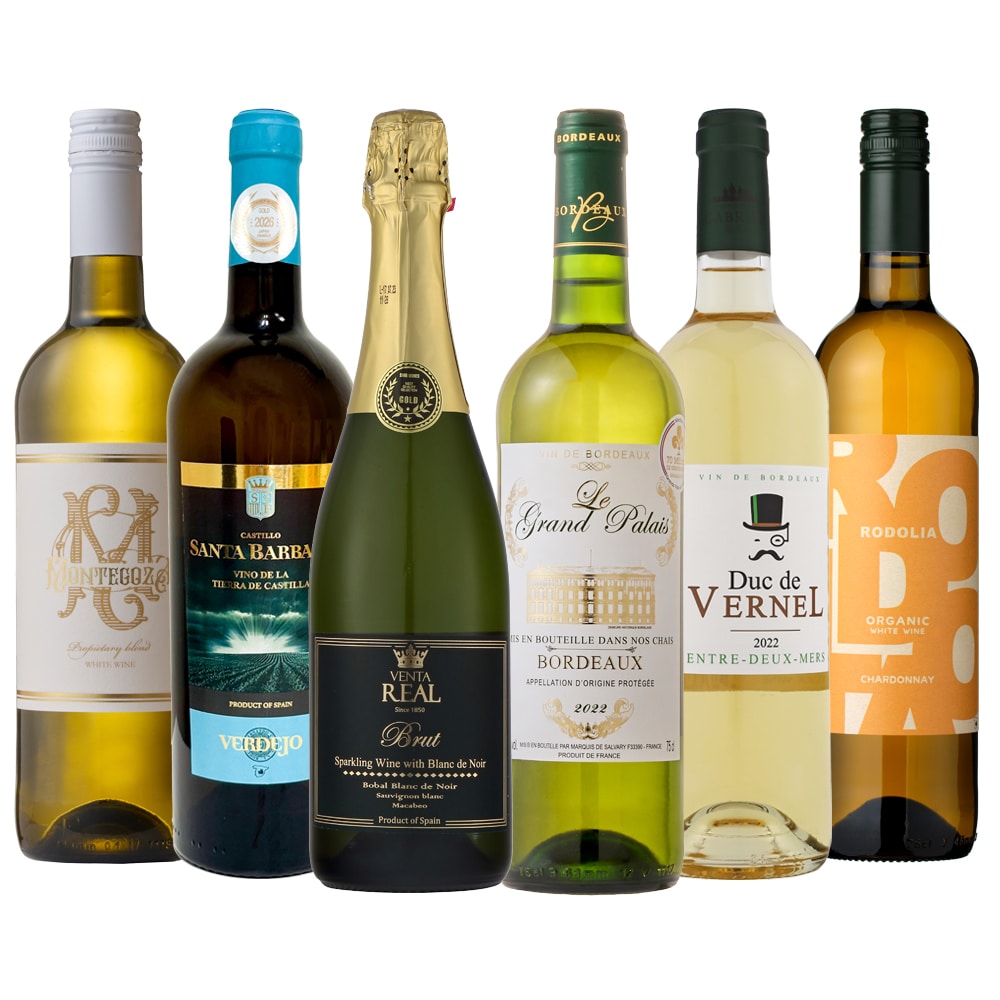 フランス産・スペイン産から厳選した、スパークリングと白ワインの爽やかな6本セット。