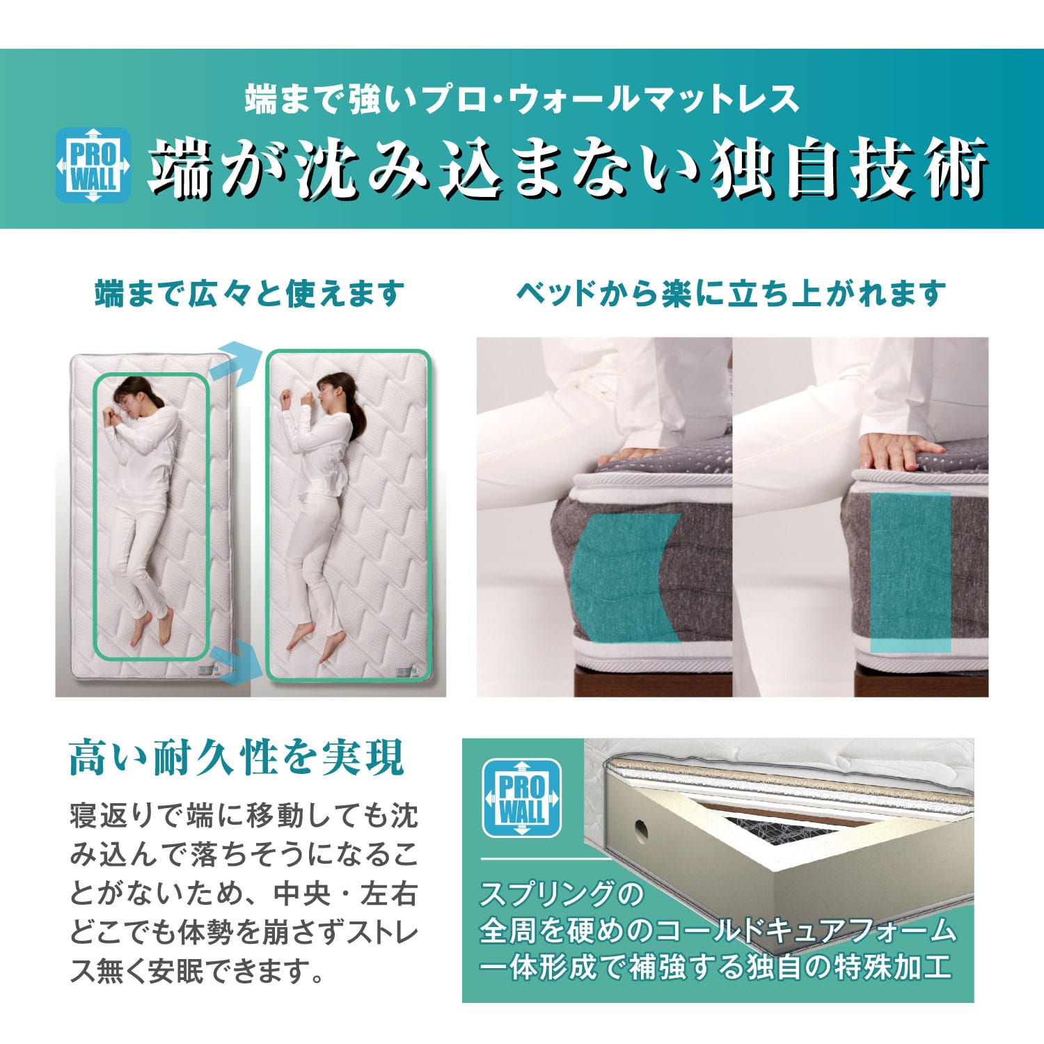 端までしっかり「プロウォール」マットレス