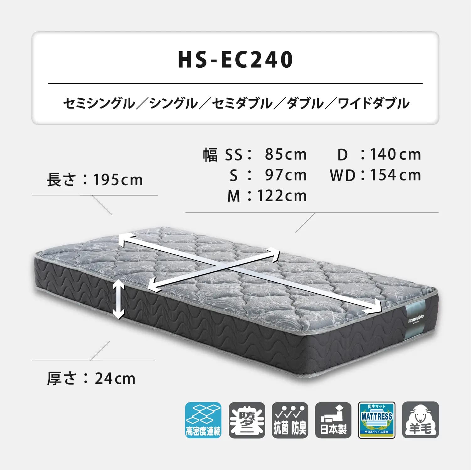- > セミダブルマットレス HS-EC240