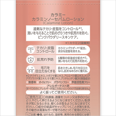 「カラミーカラミンノーセバムローション」は、過剰なテカリ・皮脂をコントロール*1。潤いを与えることで肌のざらつきや肌荒れを防ぐ。べたつかず、さらっと潤う軽い使用感の化粧水です。